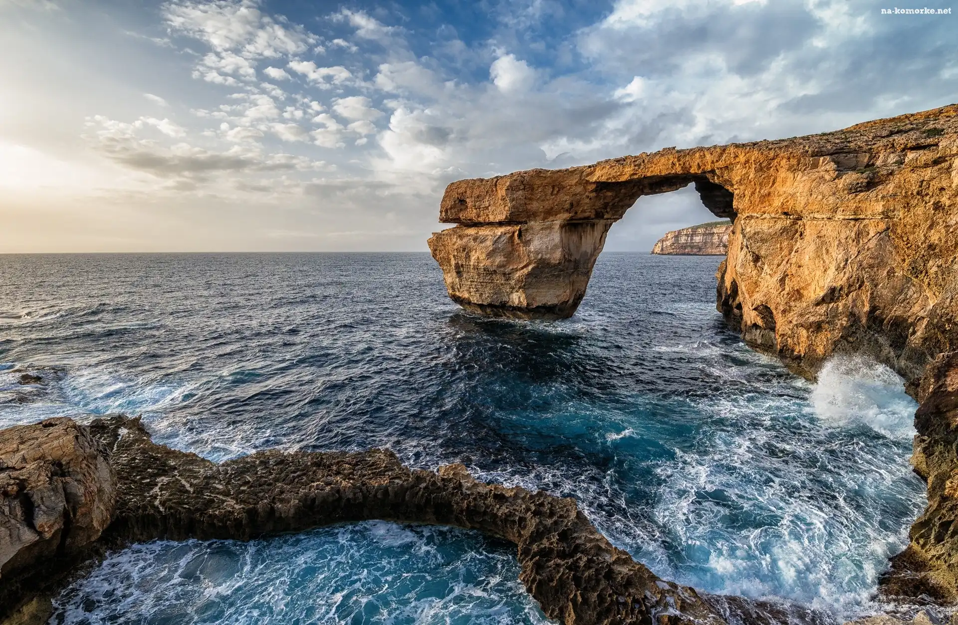 Malta, Most, Skalny, Wybrzeże, Wyspa Gozo, Morze, Skały na Komórkę