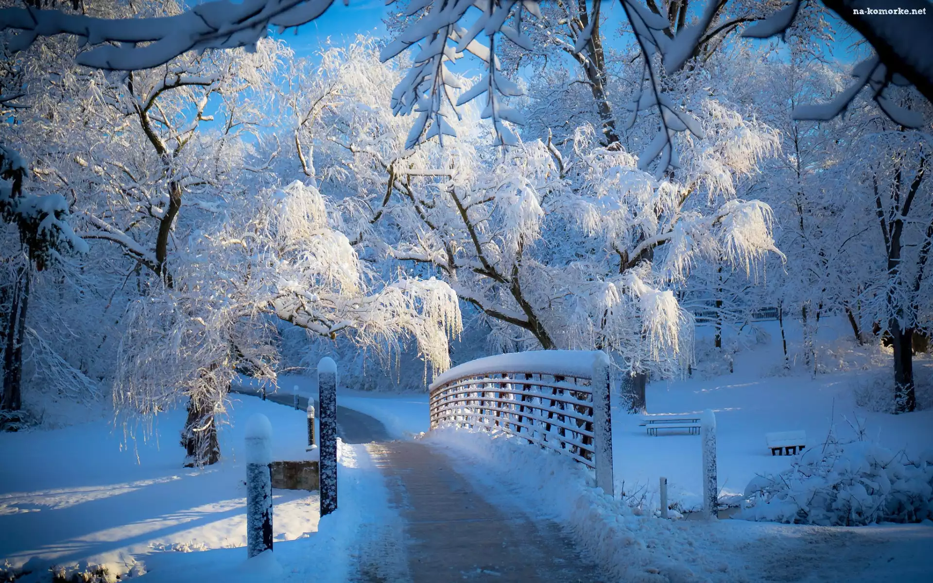 Zima, Most, Śnieg, Park, Drzewa na Komórkę