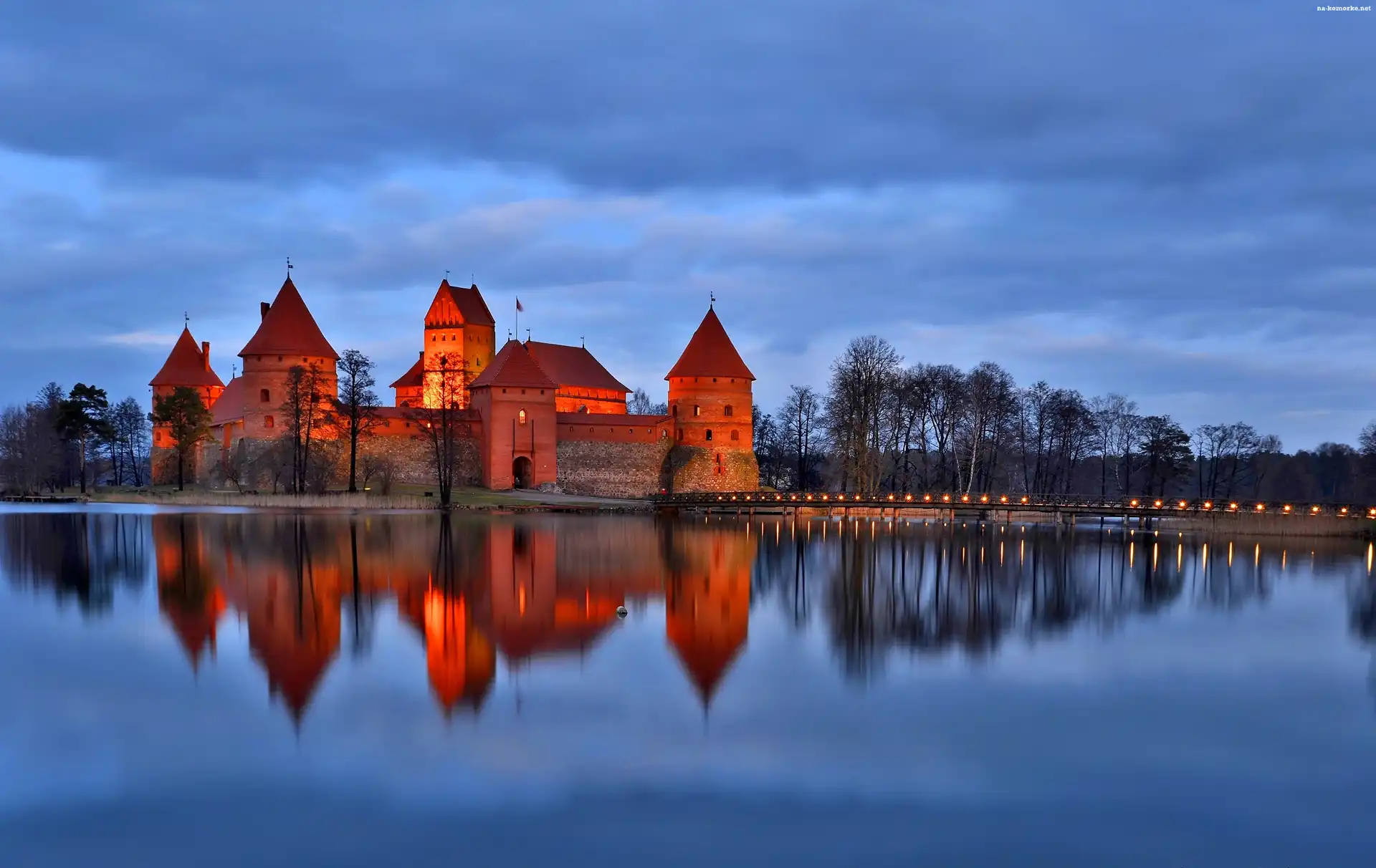 Jezioro Galwe, Troki, Zamek w Trokach, Zmierzch, Litwa, Most na Komórkę