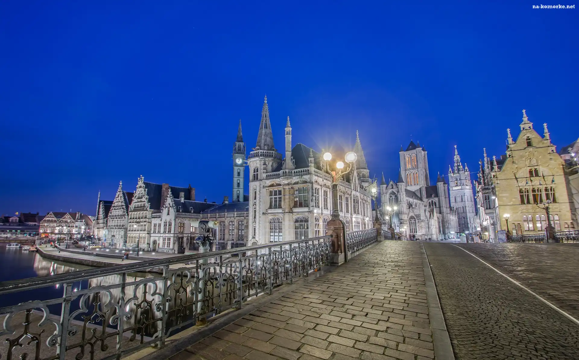 Most, Belgia, Miasto, Wieczór, Kościół na Komórkę