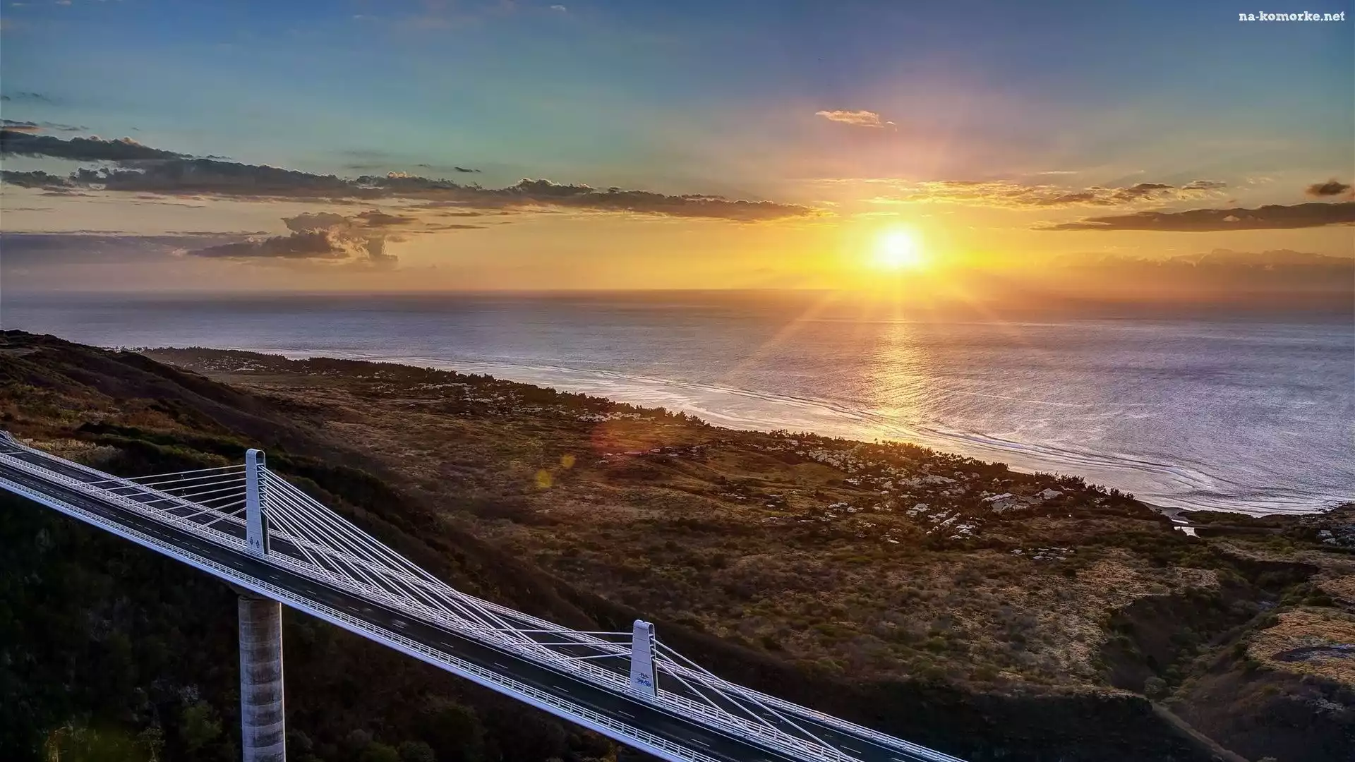 Most, Morze, Droga, Zachód słońca na Komórkę