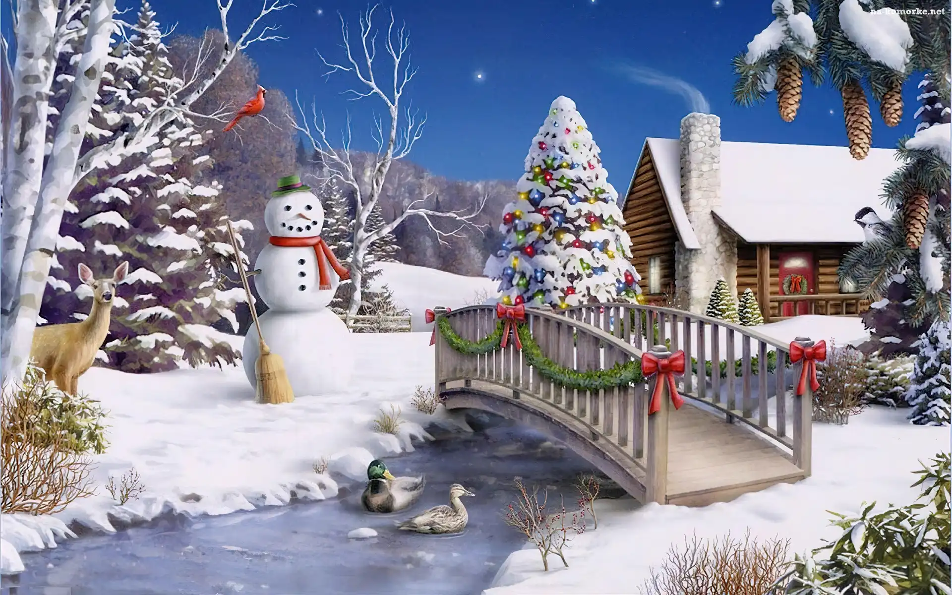 Mostek, Bałwan, Domek, Nad, Rzeczką na Komórkę