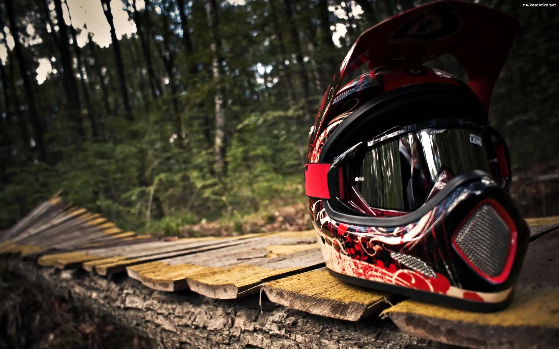 Motocyklowy, Las, Kładka, Czerwony, Kask na Komórkę