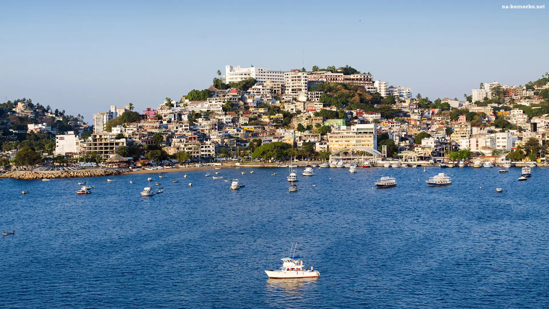 Meksyk, Motorówki, Kurort, Zatoka, Acapulco, Wzgórze, Domy, Morze na Komórkę