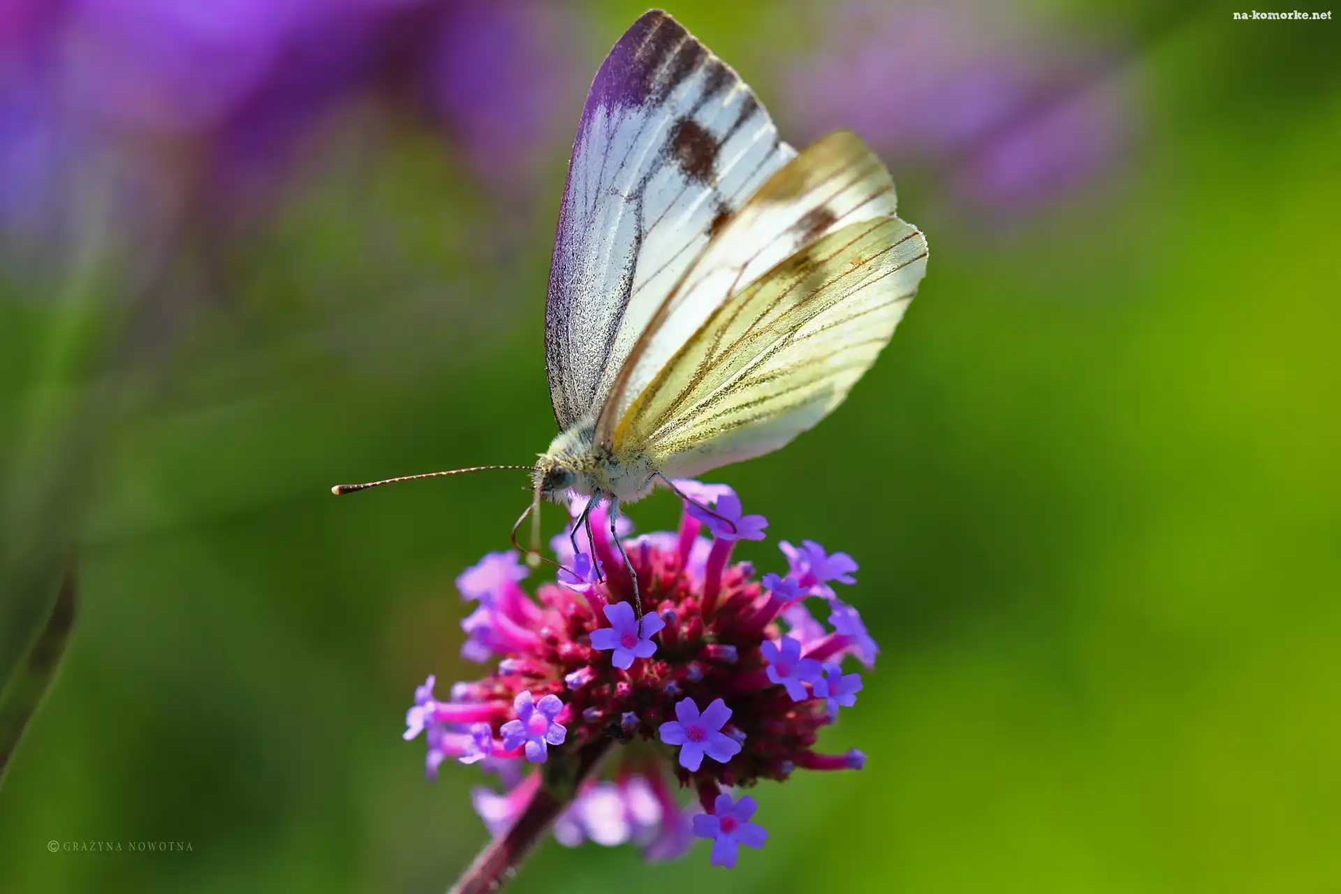 Biały, Kwiaty, Motyl, Bielinek na Komórkę
