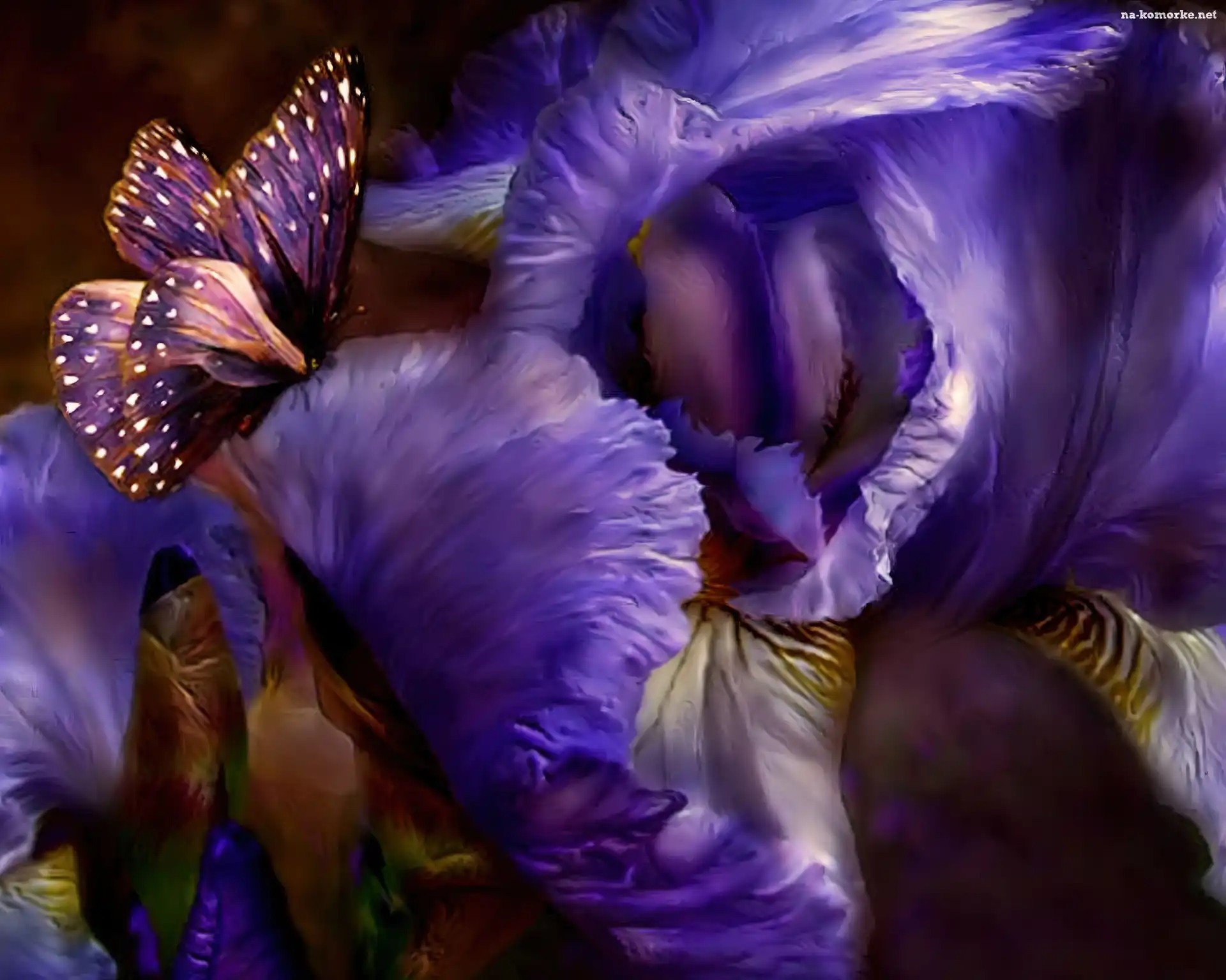 Fioletowy, Motyl, Irysy na Komórkę