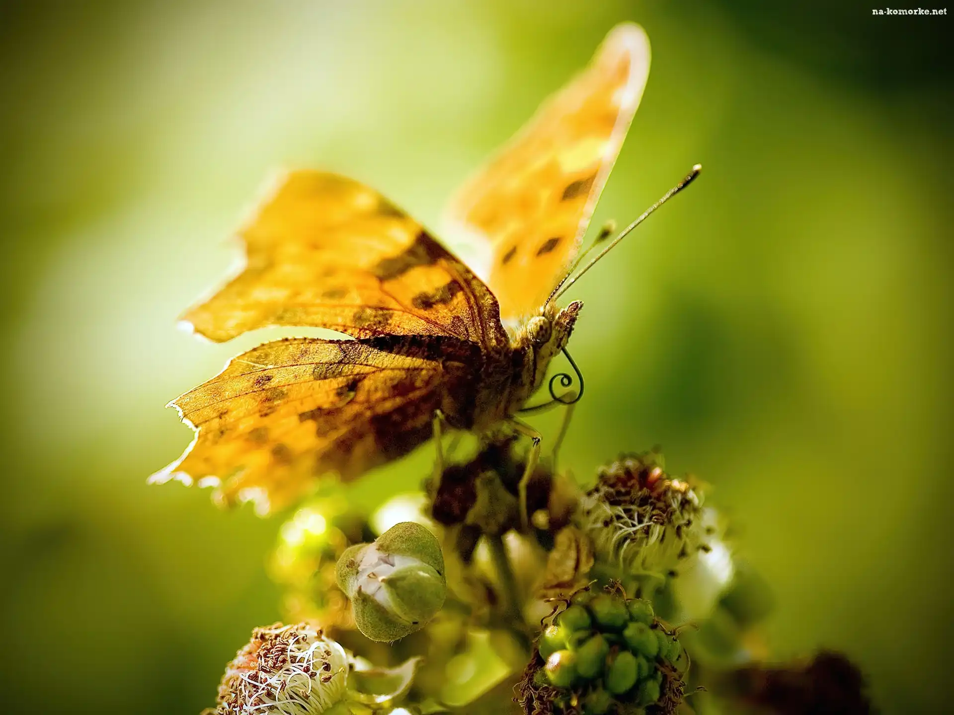 Żółty, Kwiat, Motyl, Skrzydełka na Komórkę