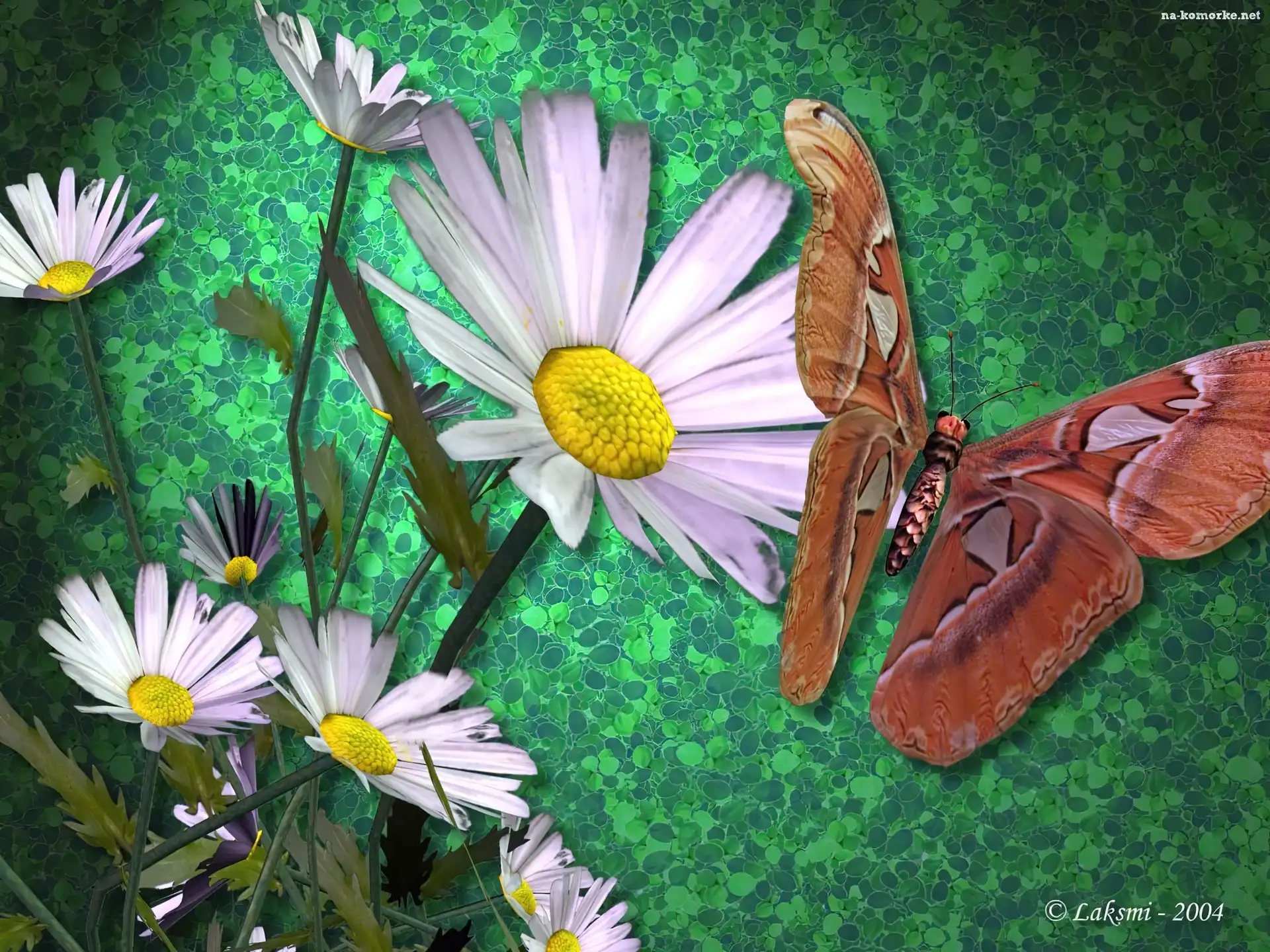 Kwiaty, 3D, Motyl na Komórkę