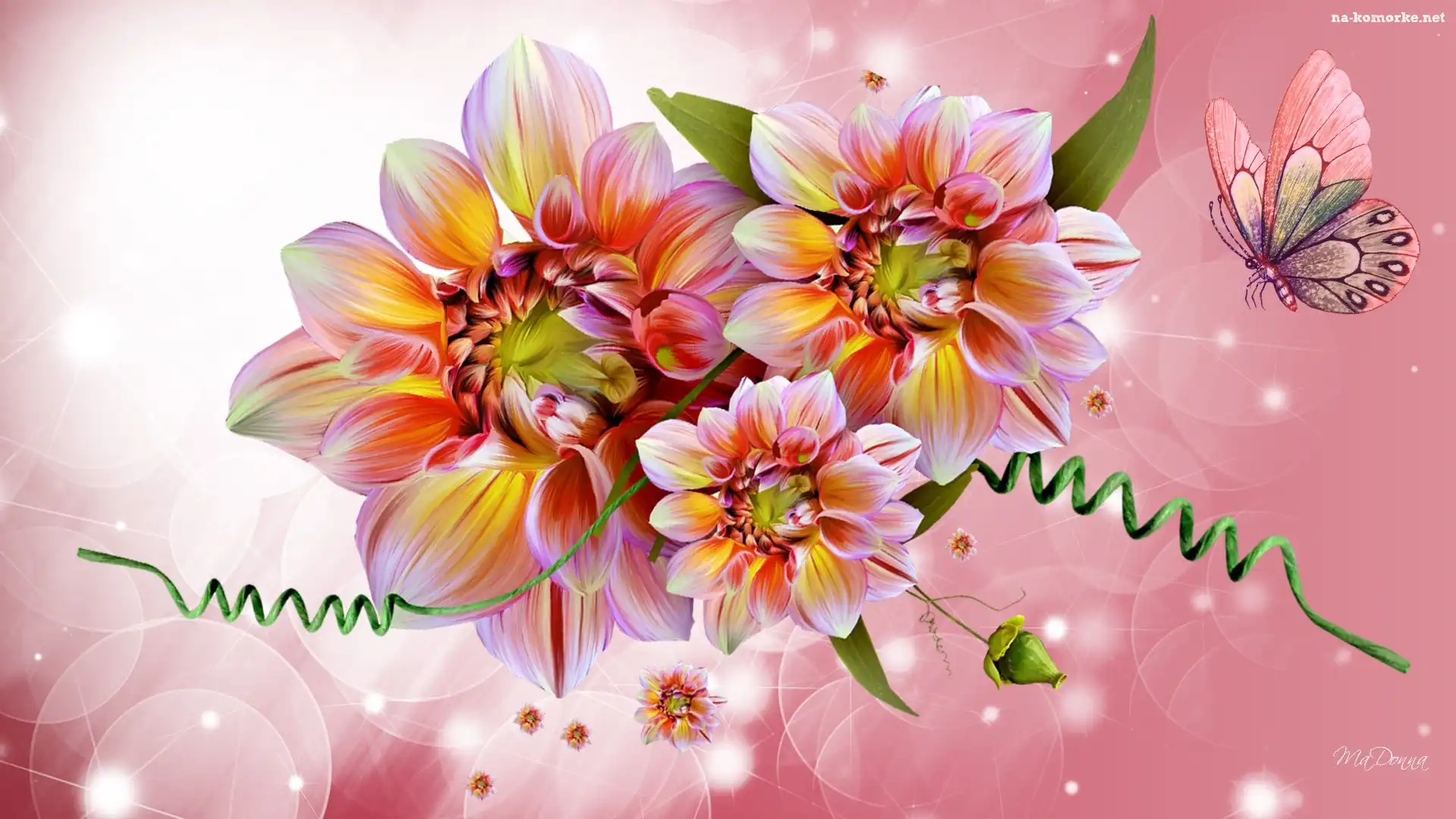 Kwiaty, Motyl, Grafika na Komórkę