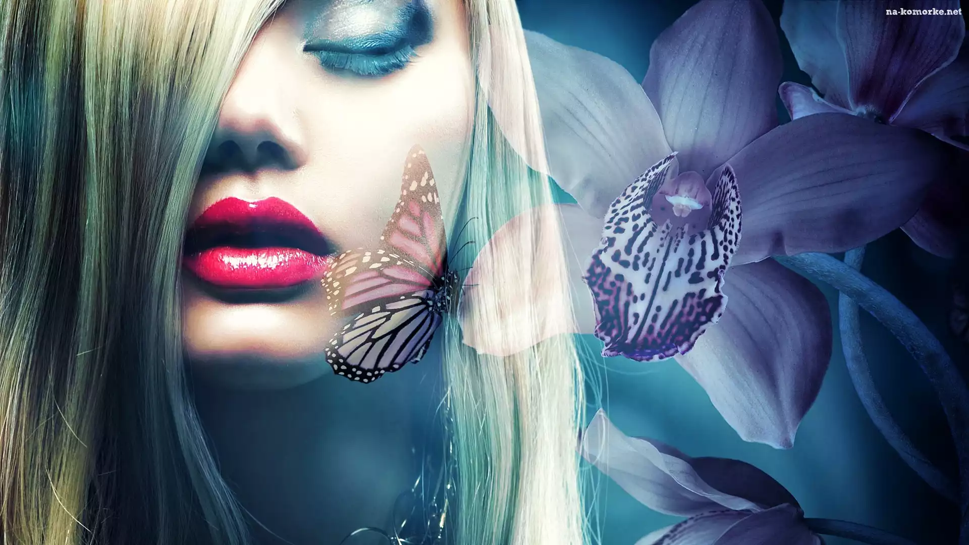 Motyl, Kobieta, Twarz, Makijaż, Kwiatki na Komórkę