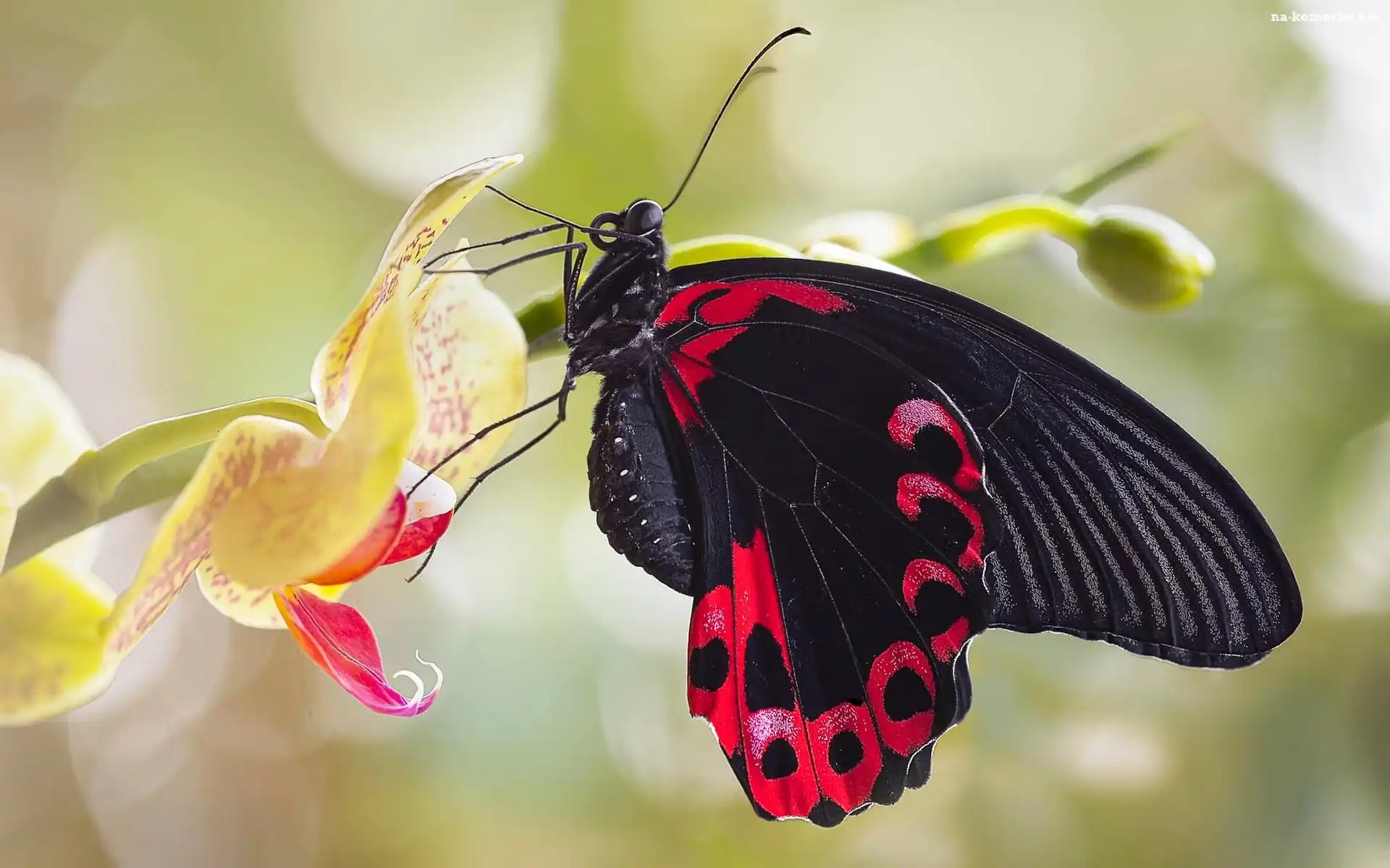 Storczyk, Czarny, Papilio Rumanzovia, Makro, Czerwony Mormon, Motyl na Komórkę