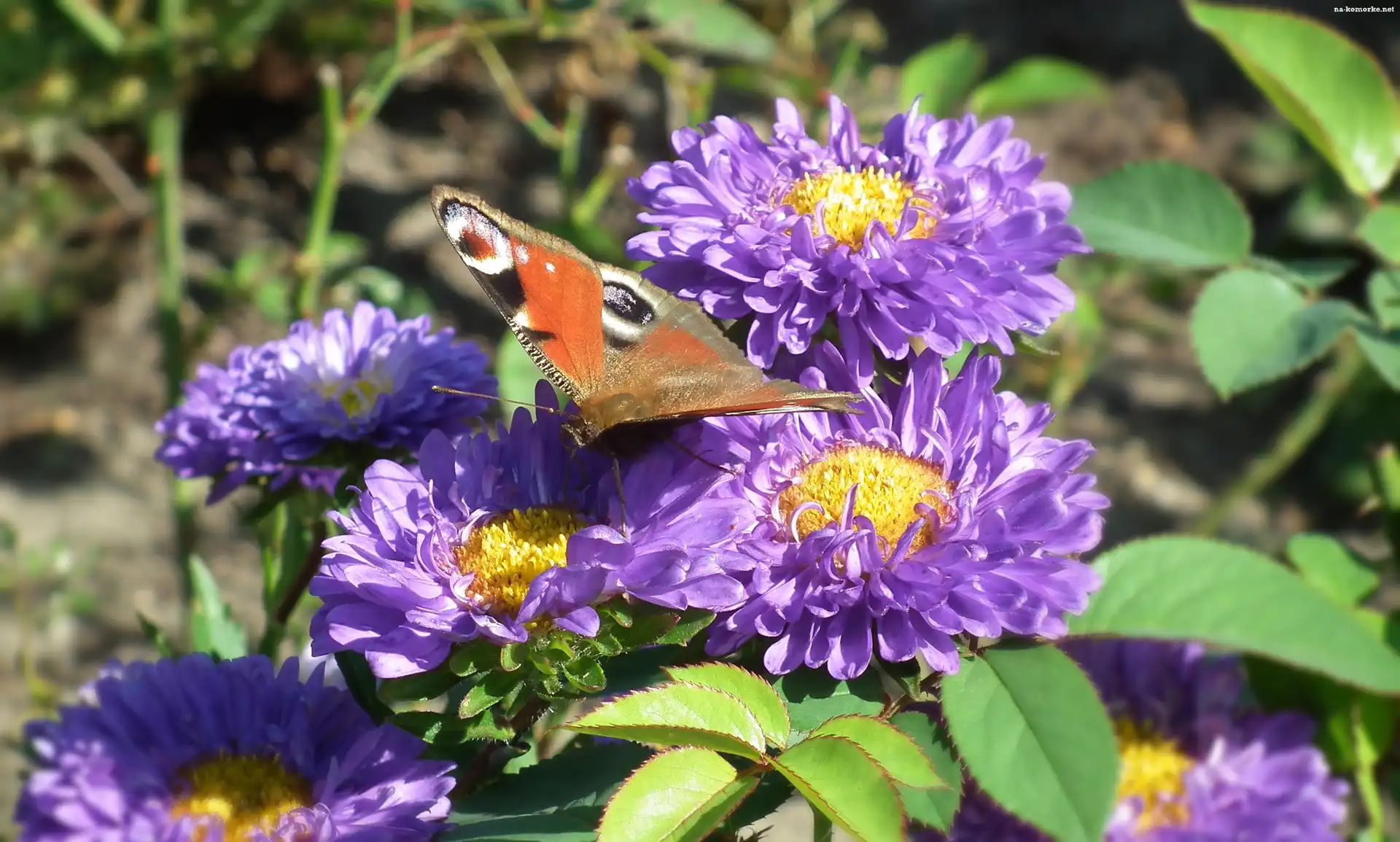 Motyl, Astry, Rusałka pawik, Kwiaty na Komórkę