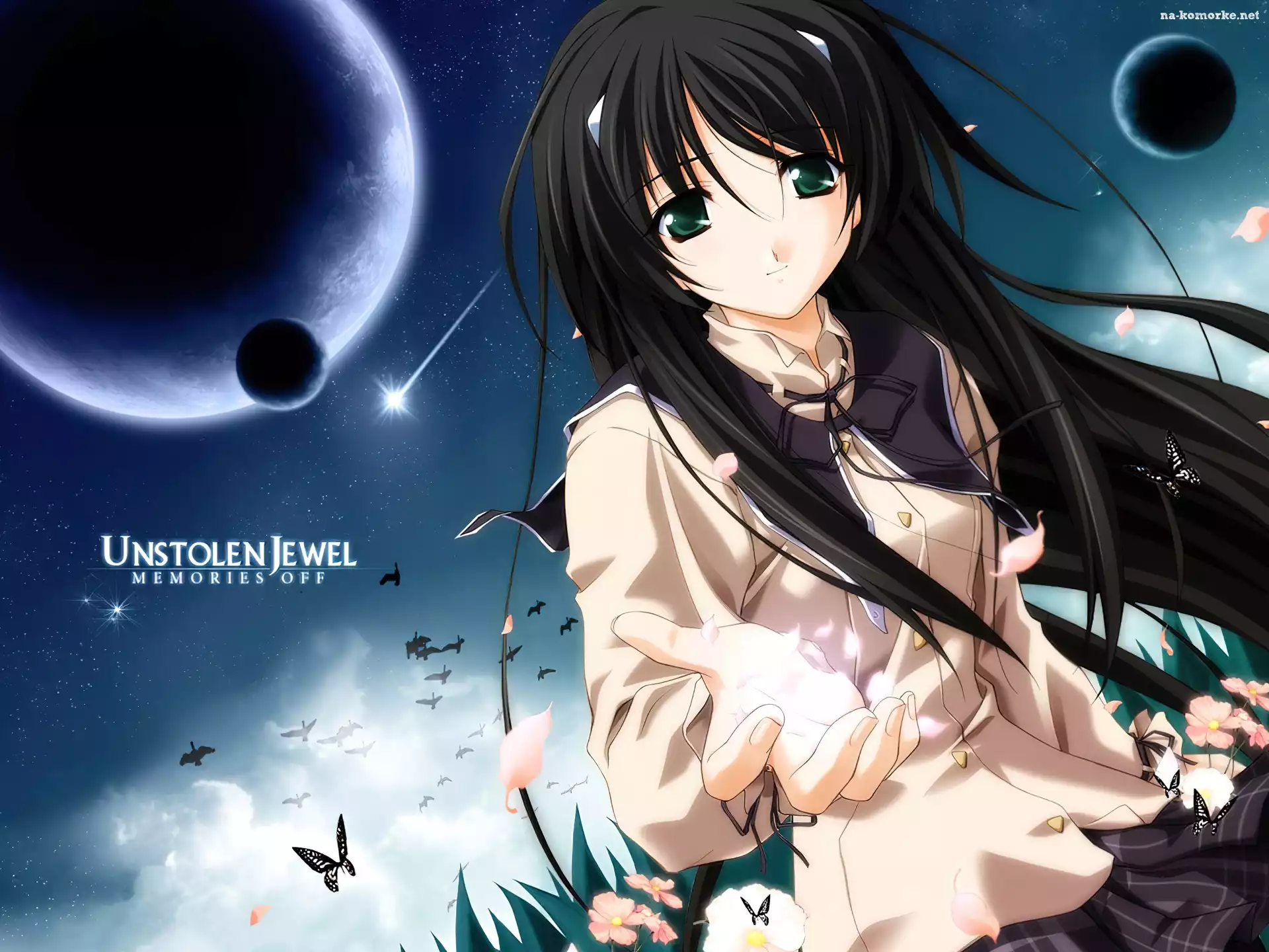 motyle, Memories Off, planety, kobieta, księżyc na Komórkę