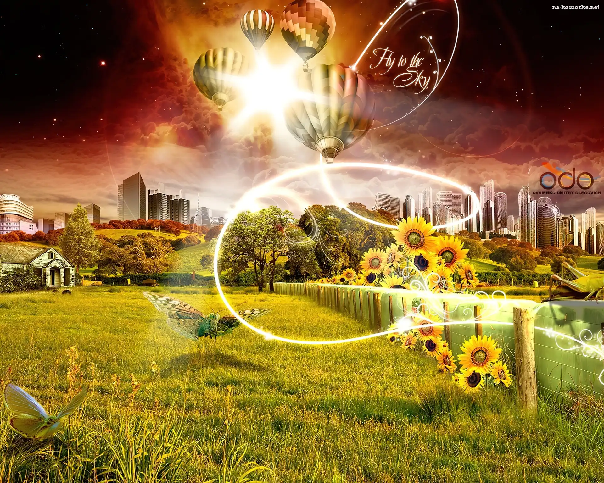Słoneczniki, Motyle, Balony na Komórkę