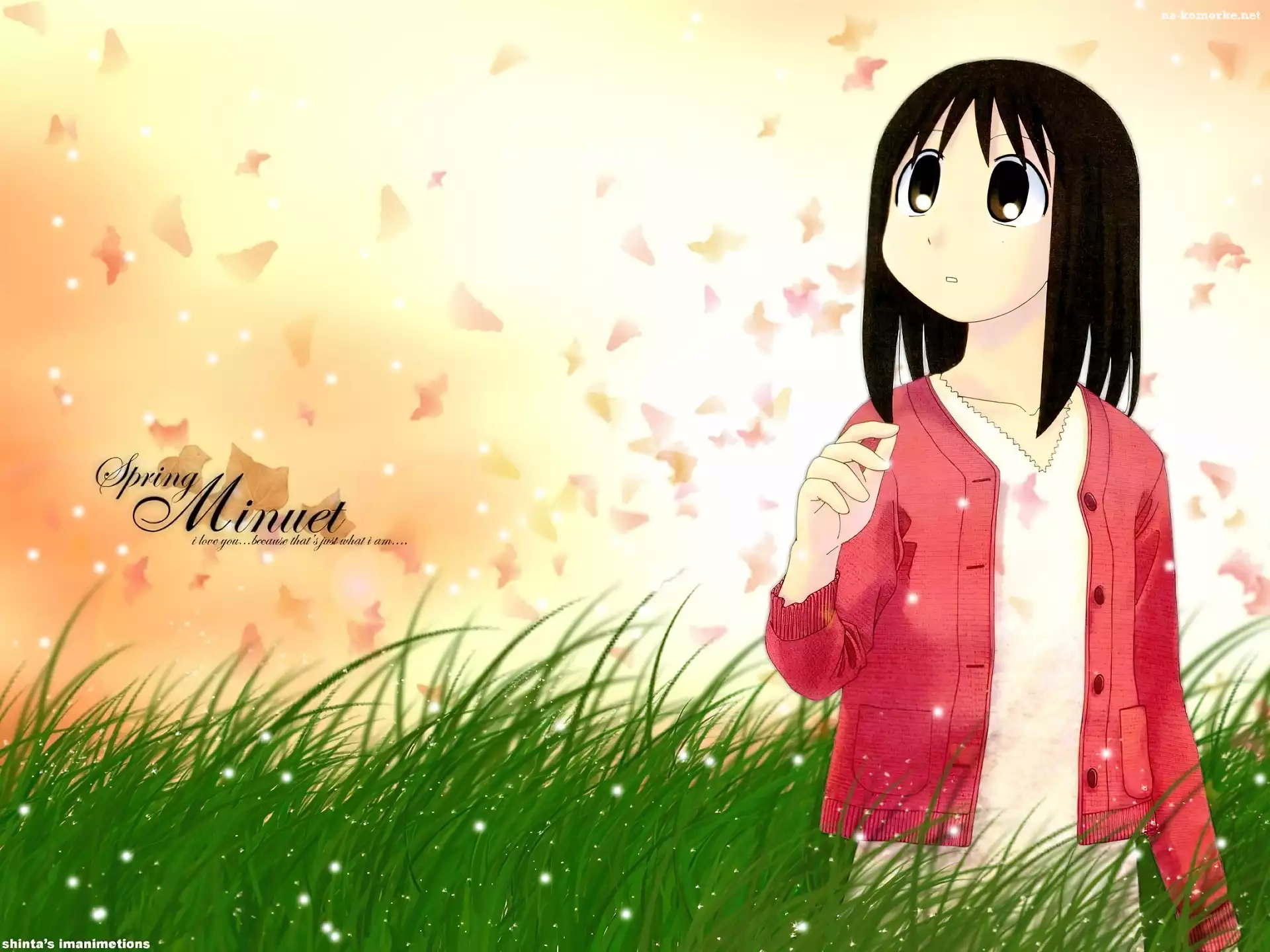 Azumanga Daioh, trawa, napisy, dziewczyna, motyle na Komórkę