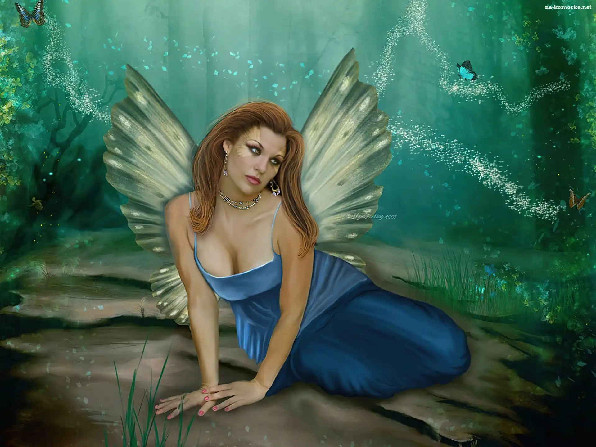 Motylek, Dziewczyna, Skrzydła, Niebieska, Suknia na Komórkę