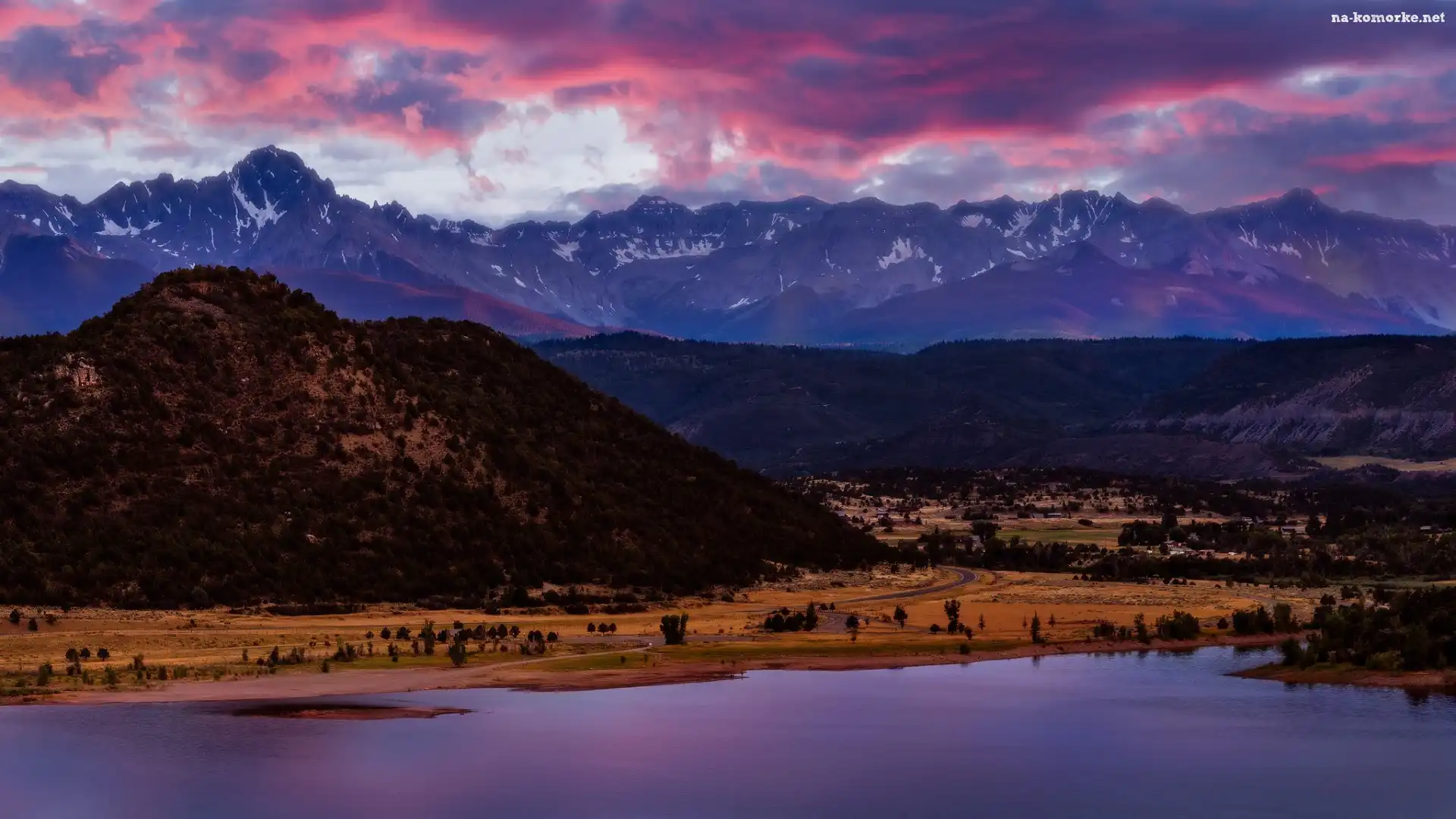 Stan Kolorado, Blue Lake, San Juan Mountains, Jezioro, Góra, Góry, Drzewa, Jesień, Mount Sneffels, Stany Zjednoczone na Komórkę |