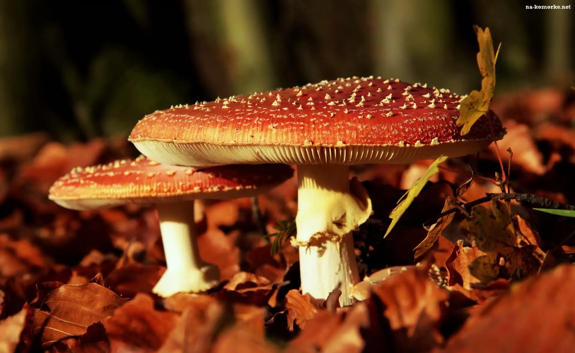 Grzyby, Muchomorki, Liście na Komórkę