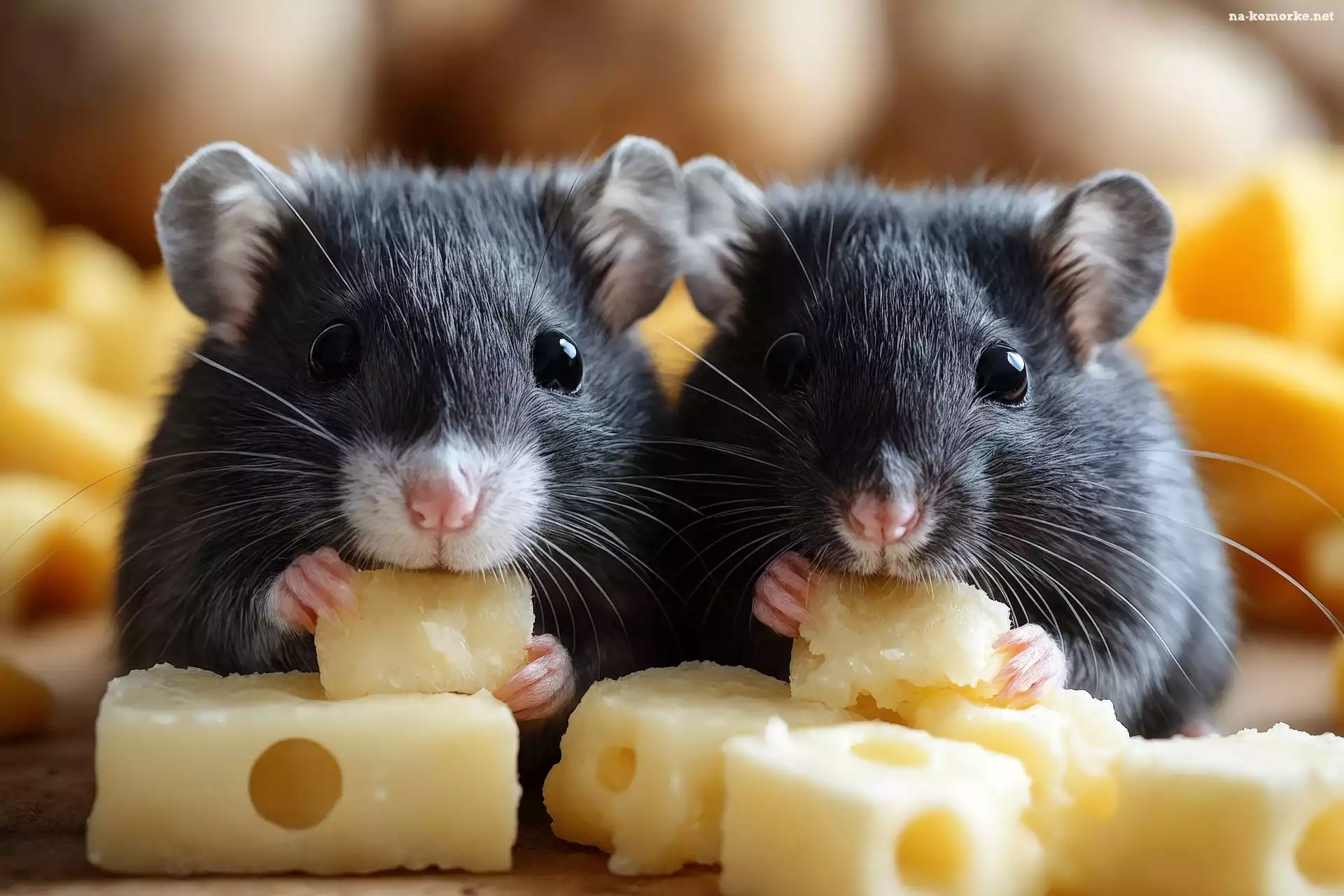 Dwie, Myszki, Żółty, Szare, Ser na Komórkę