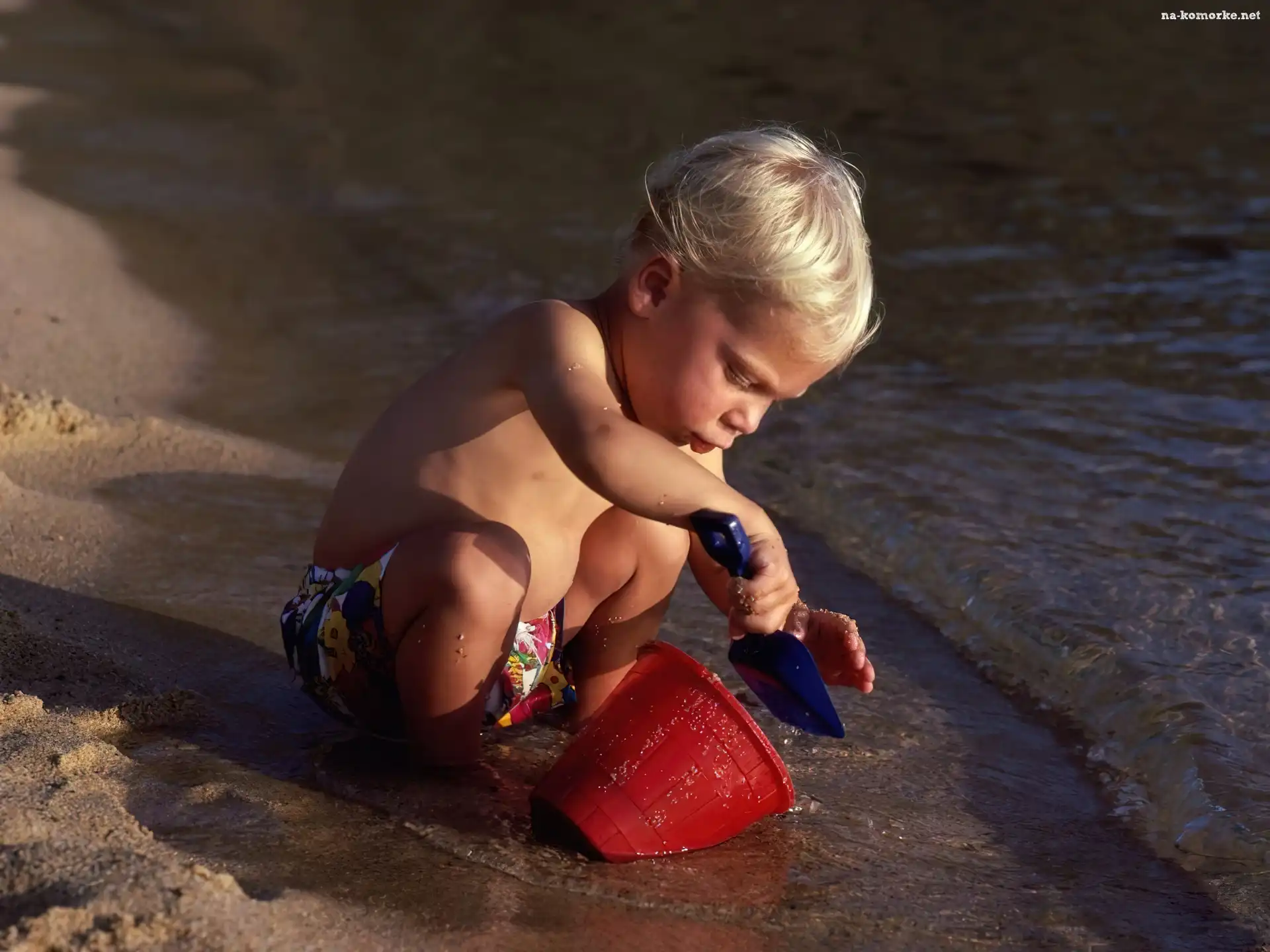 Dziecko na plaży na Komórkę