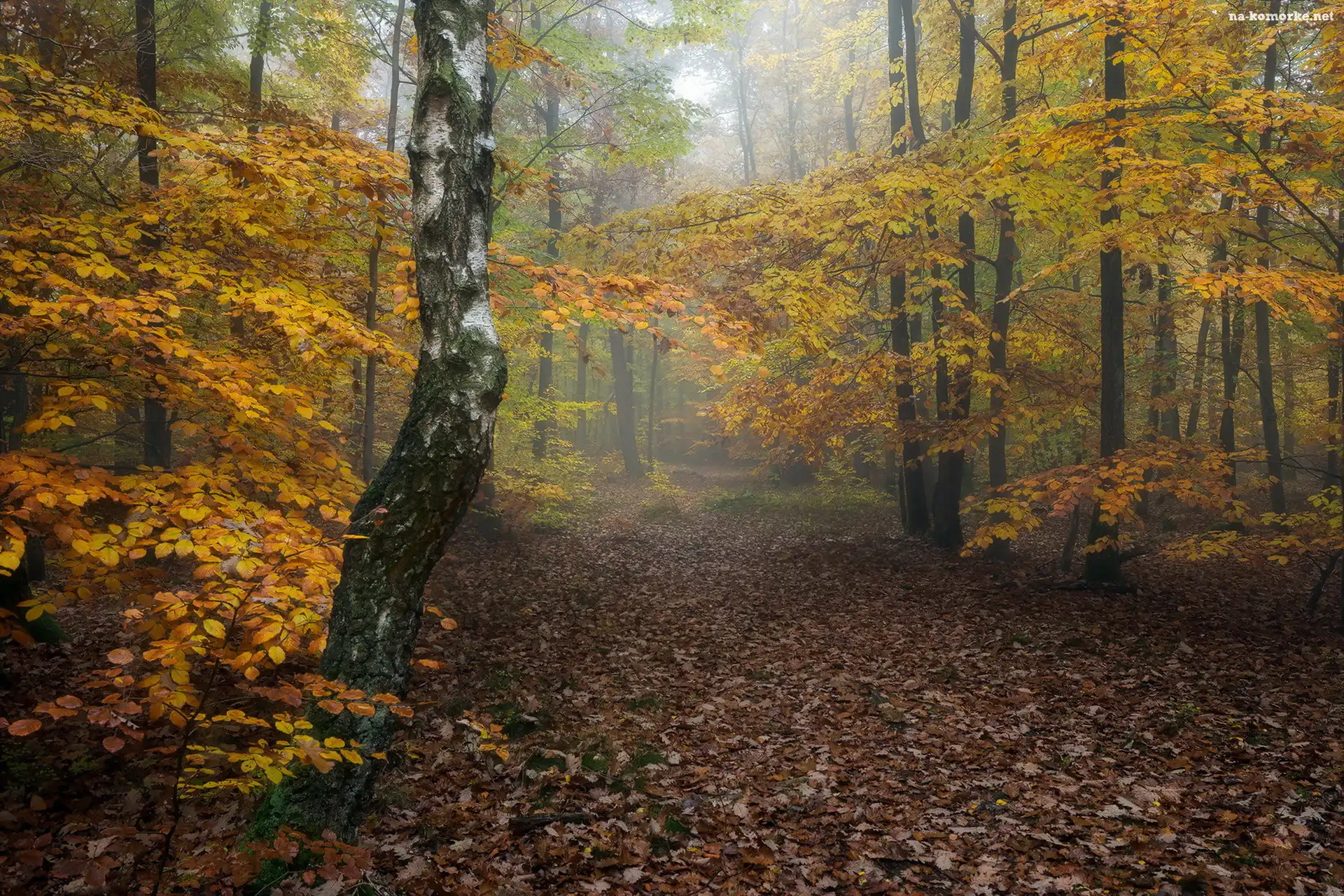 Jesień, Nadrenia-Palatynat, Niemcy, Las, Masyw Donnersberg, Droga na Komórkę