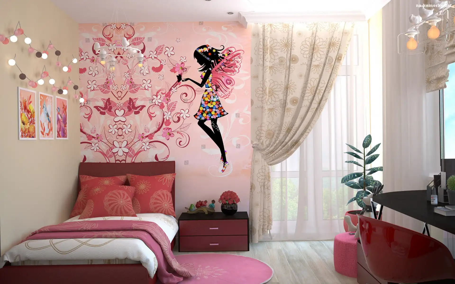 Naklejki, Pokój, Dziewczęcy, Łóżko, Ściana na Komórkę