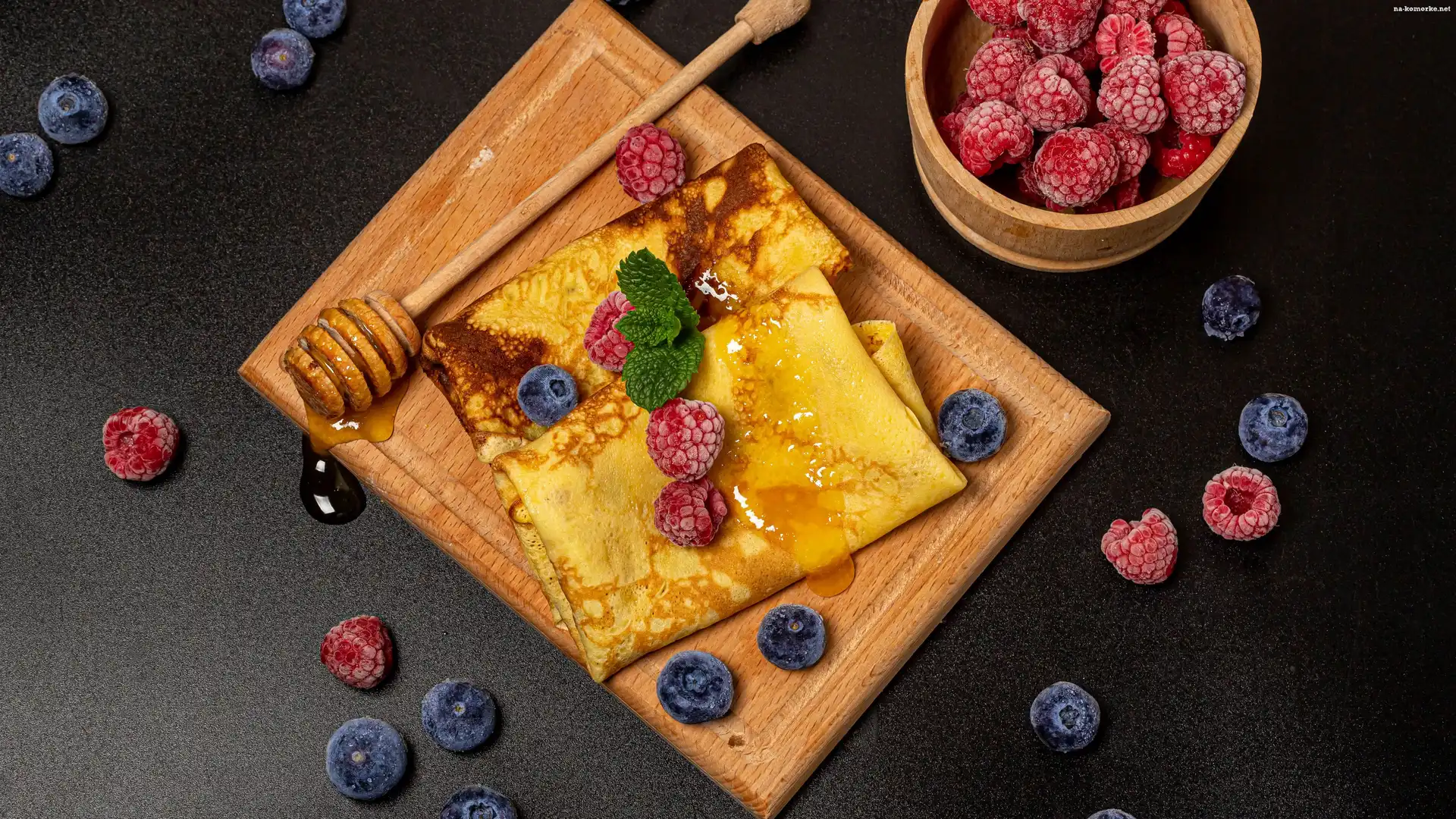 Naleśniki, Maliny, Jagody, Miód na Komórkę