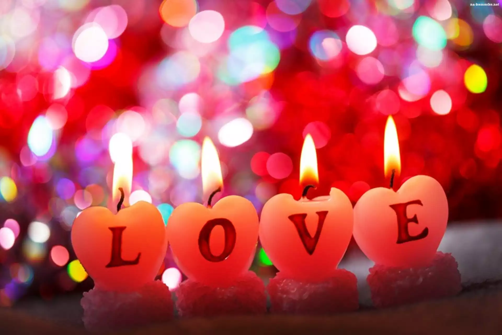 Świeczki, Miłosne, Napis, Love na Komórkę