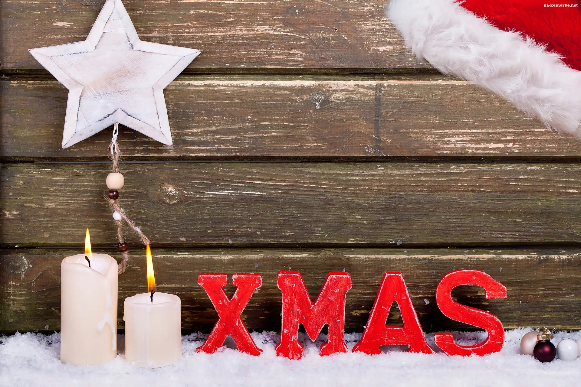 Kompozycja, Napis, XMAS, Białe, Świece, Świąteczne, Boże Narodzenie na Komórkę