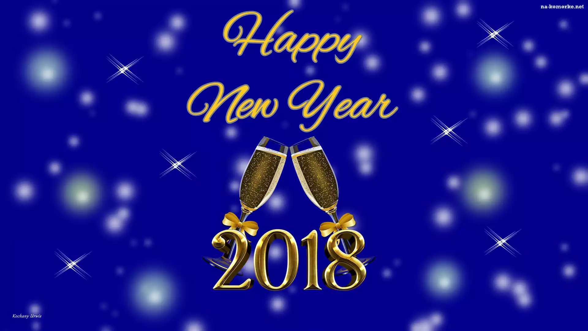Szampan, 2018, Nowy Rok, Happy New Year, Kieliszki, Napis na Komórkę