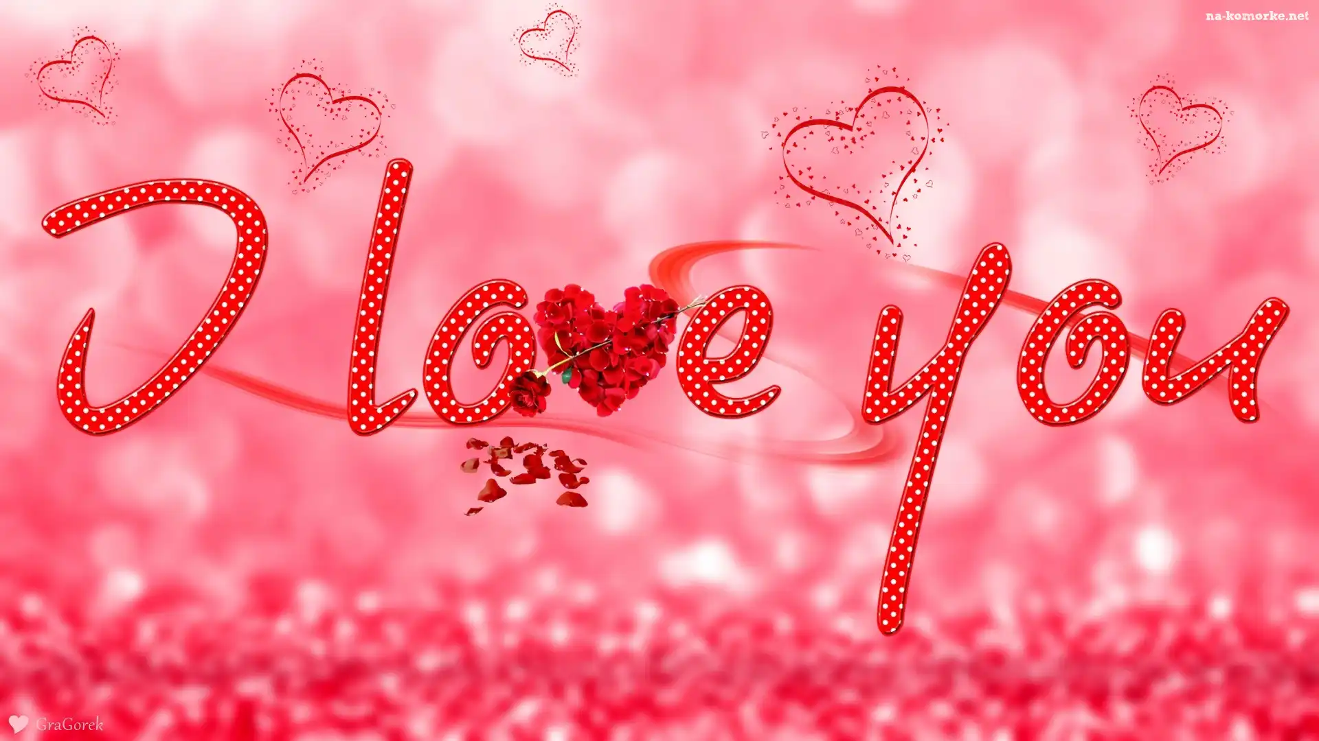 Napis, Serca, Walentynki, Grafika, Tło, Róża na Komórkę