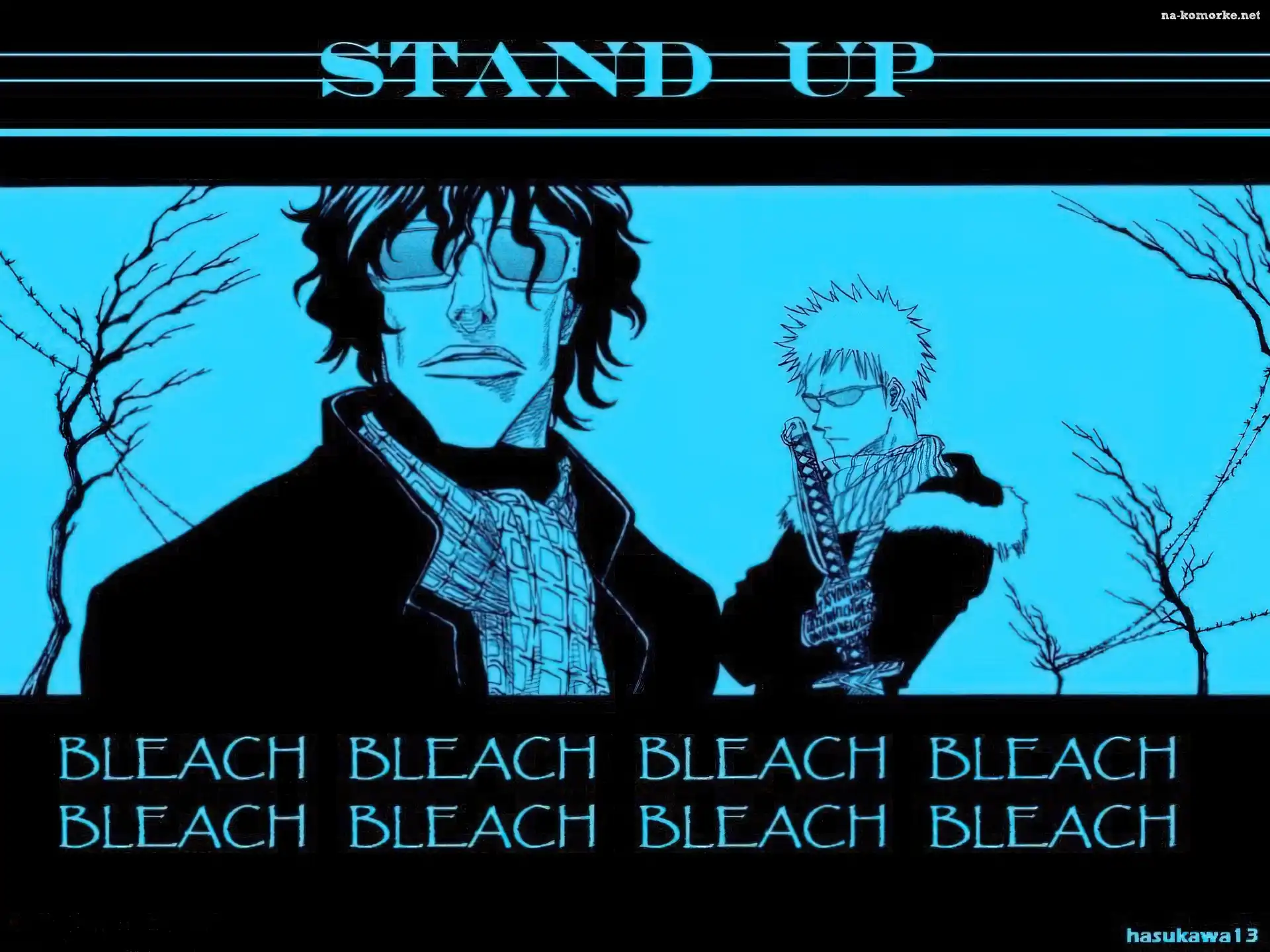 napisy, Bleach, stand up, postacie, miecz na Komórkę