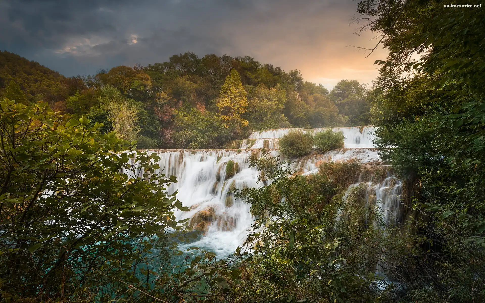 Drzewa, Wodospad, Park Narodowy Krka, Krzewy, Chorwacja na Komórkę