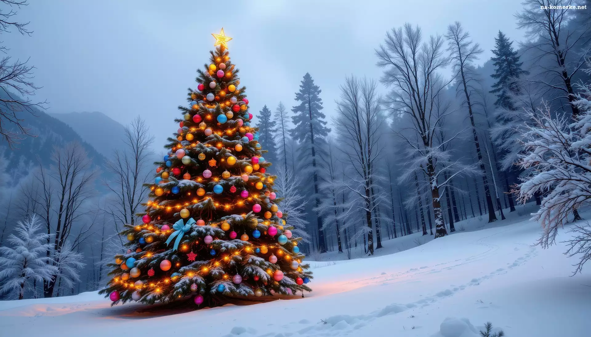 Zima, Drzewa, Boże Narodzenie, Choinka, Grafika AI na Komórkę
