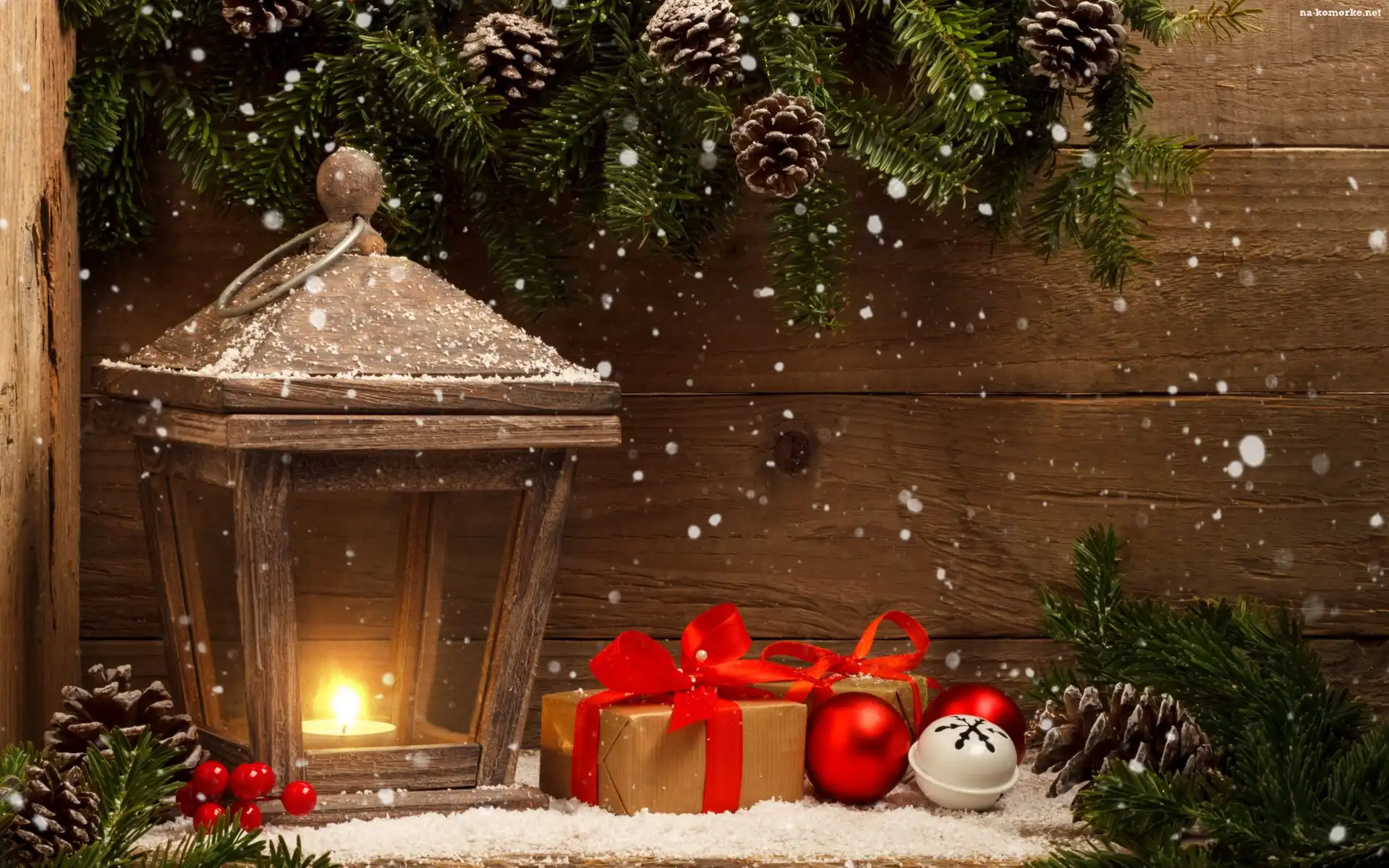 Boże Narodzenie, Prezenty, Deski, Lampion, Świeca, Bombki, Gałązki na Komórkę