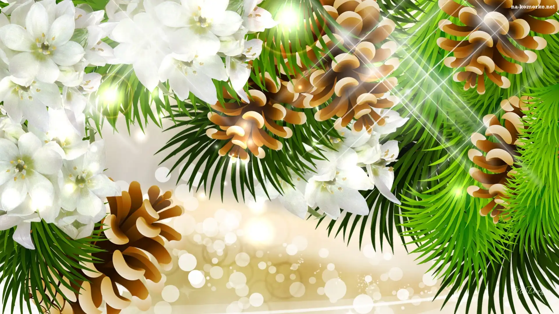 Kwiaty, Narodzenie, Grafika, Gałązki, Iglaka, Szyszki, Boże na Komórkę
