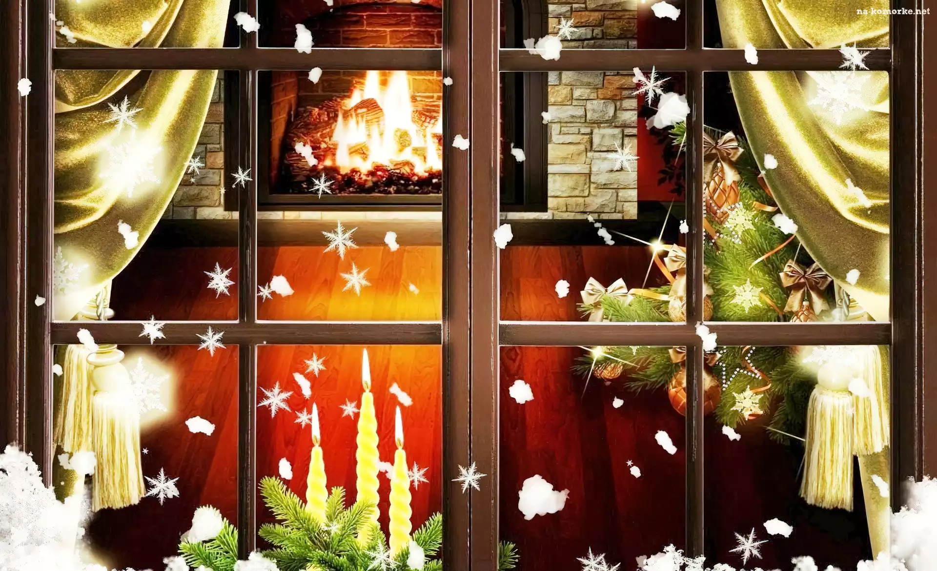 Okno, Narodzenie, Grafika, Widok, Mieszkania, Choinka, Boże na Komórkę