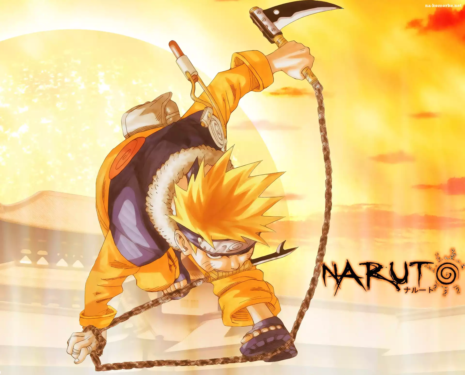 Naruto, sztylet, łańcuch, postać na Komórkę