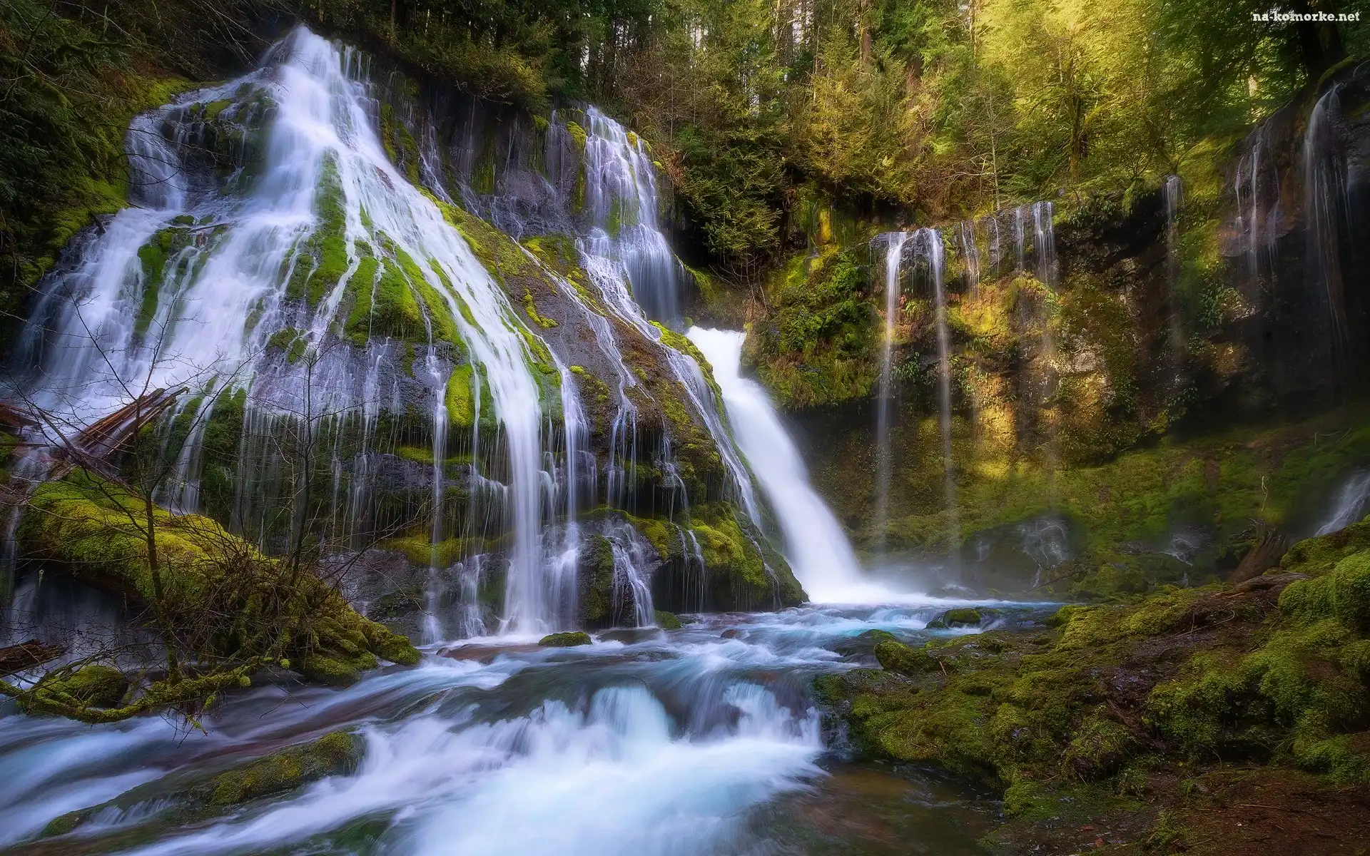 Wodospad, Panther Creek Falls, Stany Zjednoczone, Gifford Pinchot National Forest, Las, Drzewa, Stan Waszyngton na Komórkę |