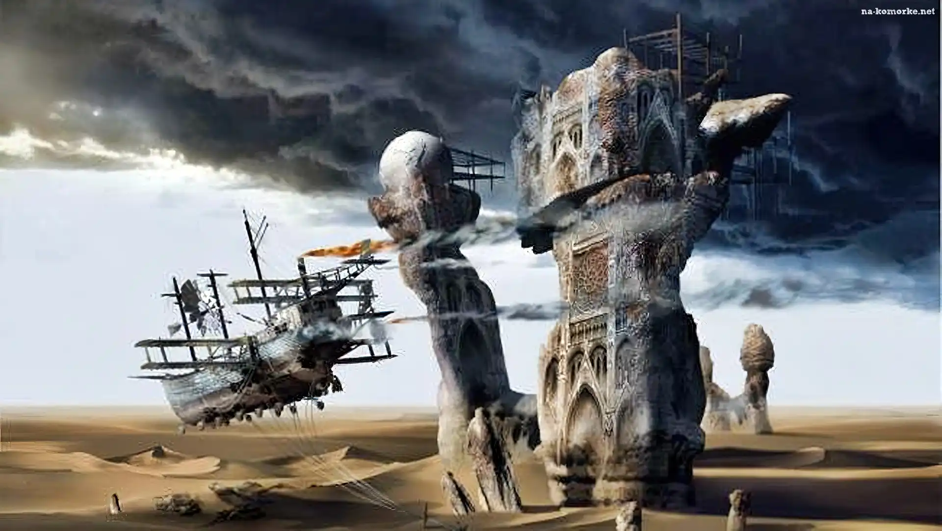 Neosurrealizm, Pustynia, Statek, Skała na Komórkę