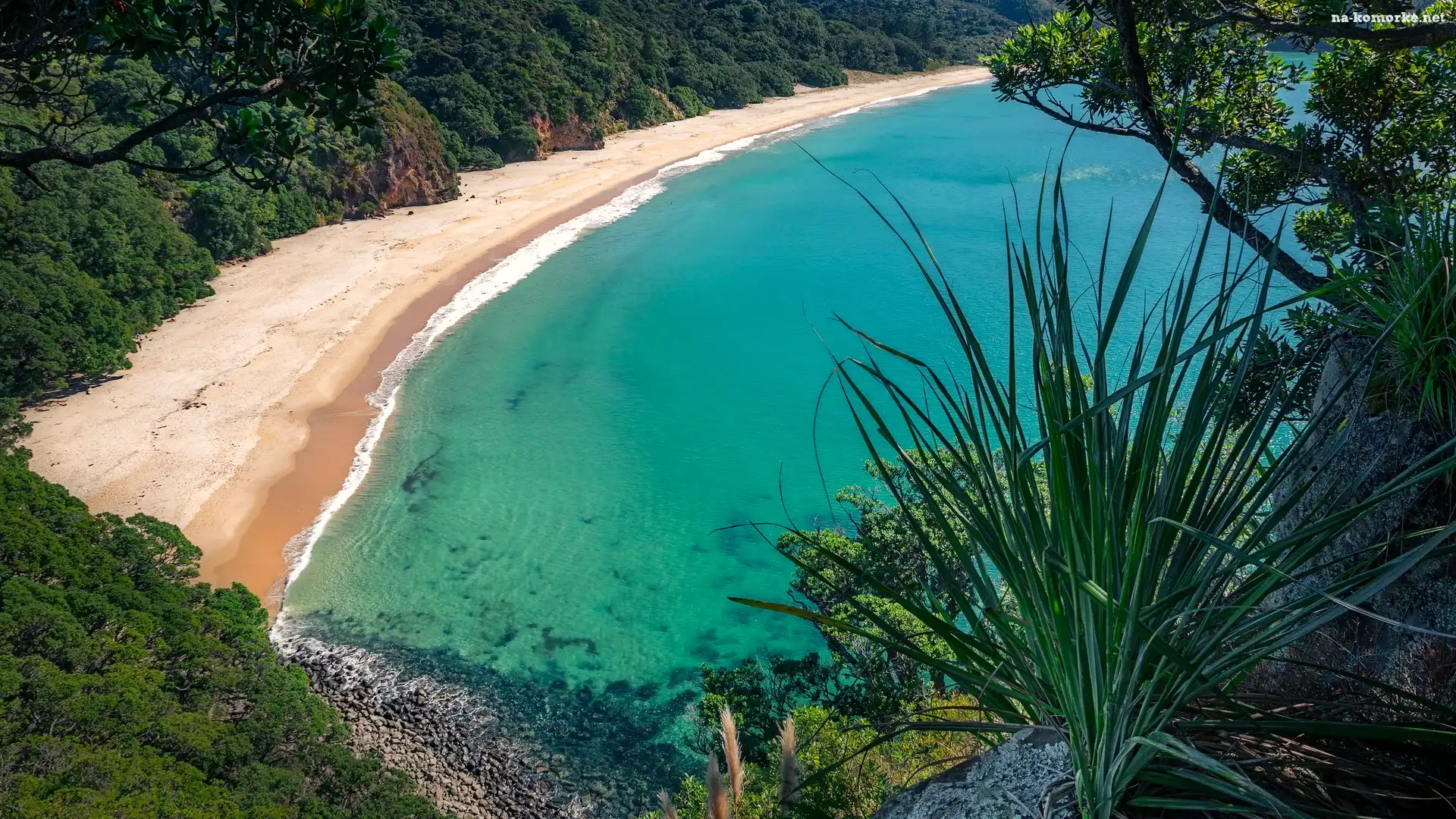 Plaża, Whangapoua, Wybrzeże, Nowa Zelandia, New Chums Beach, Zatoka, Wainuiototo Bay, Rośliny na Komórkę |