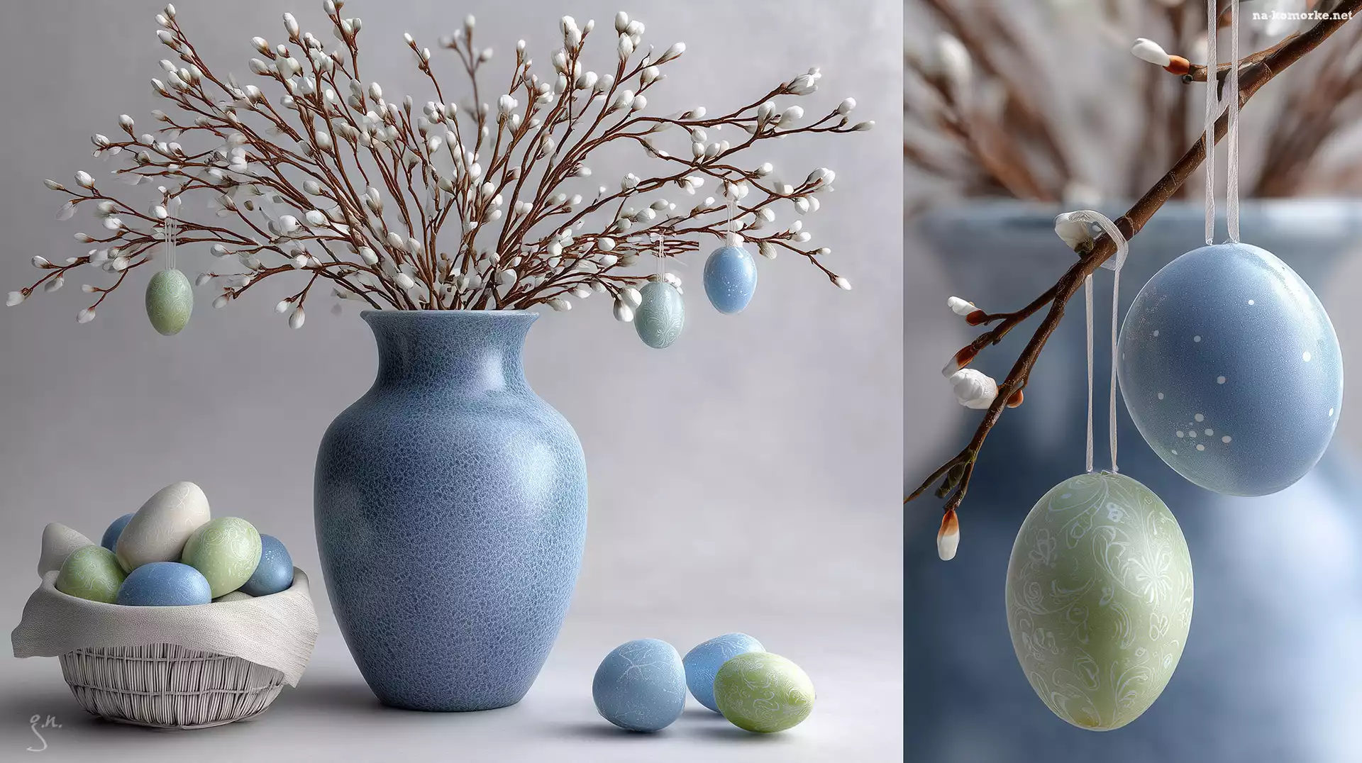 Pisanki, Koszyk, Wielkanoc, Grafika AI, Wazon, Bazie, Niebieski na Komórkę