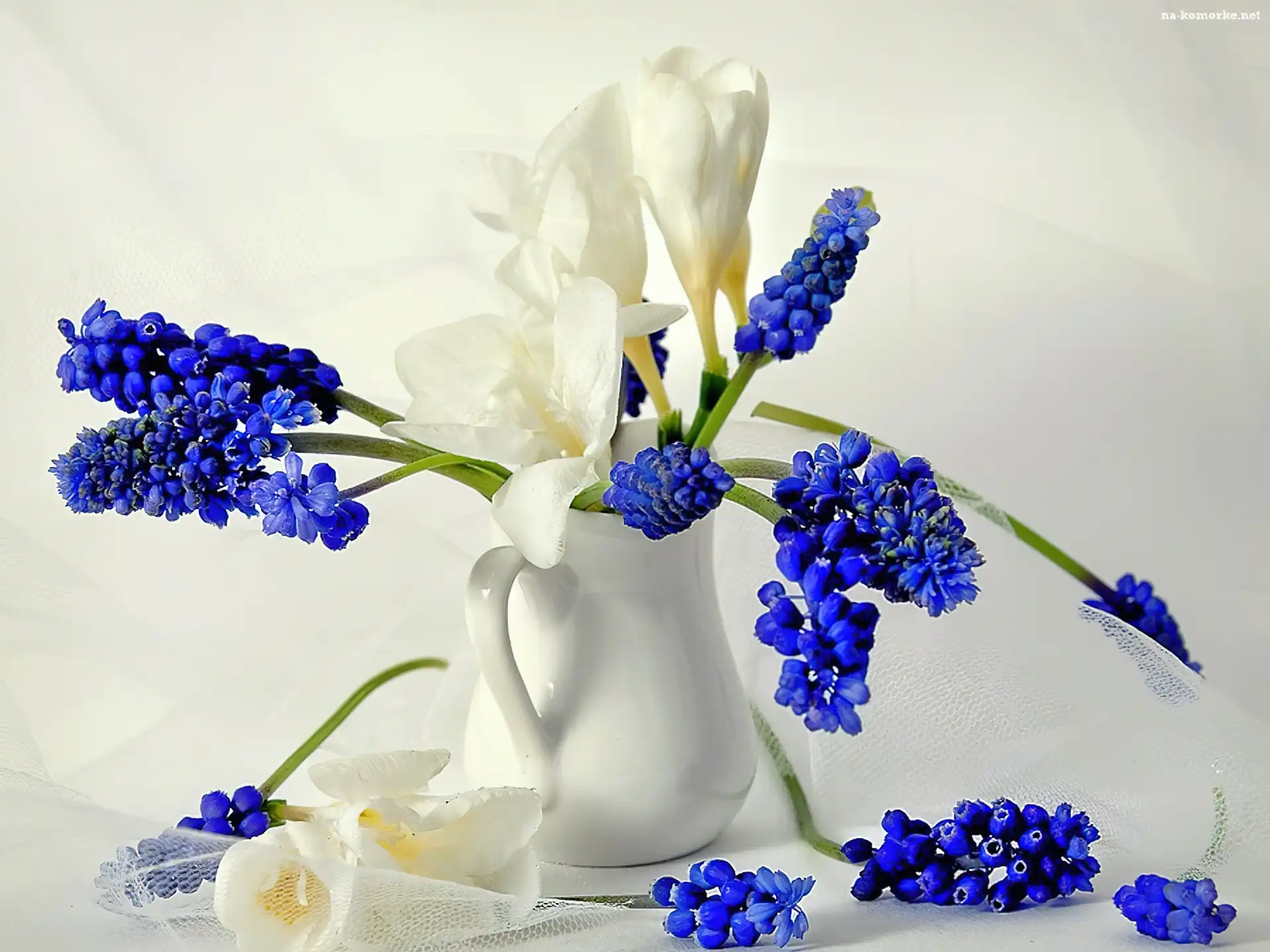 Niebieskie, Wazon, Białe, Kwiaty na Komórkę
