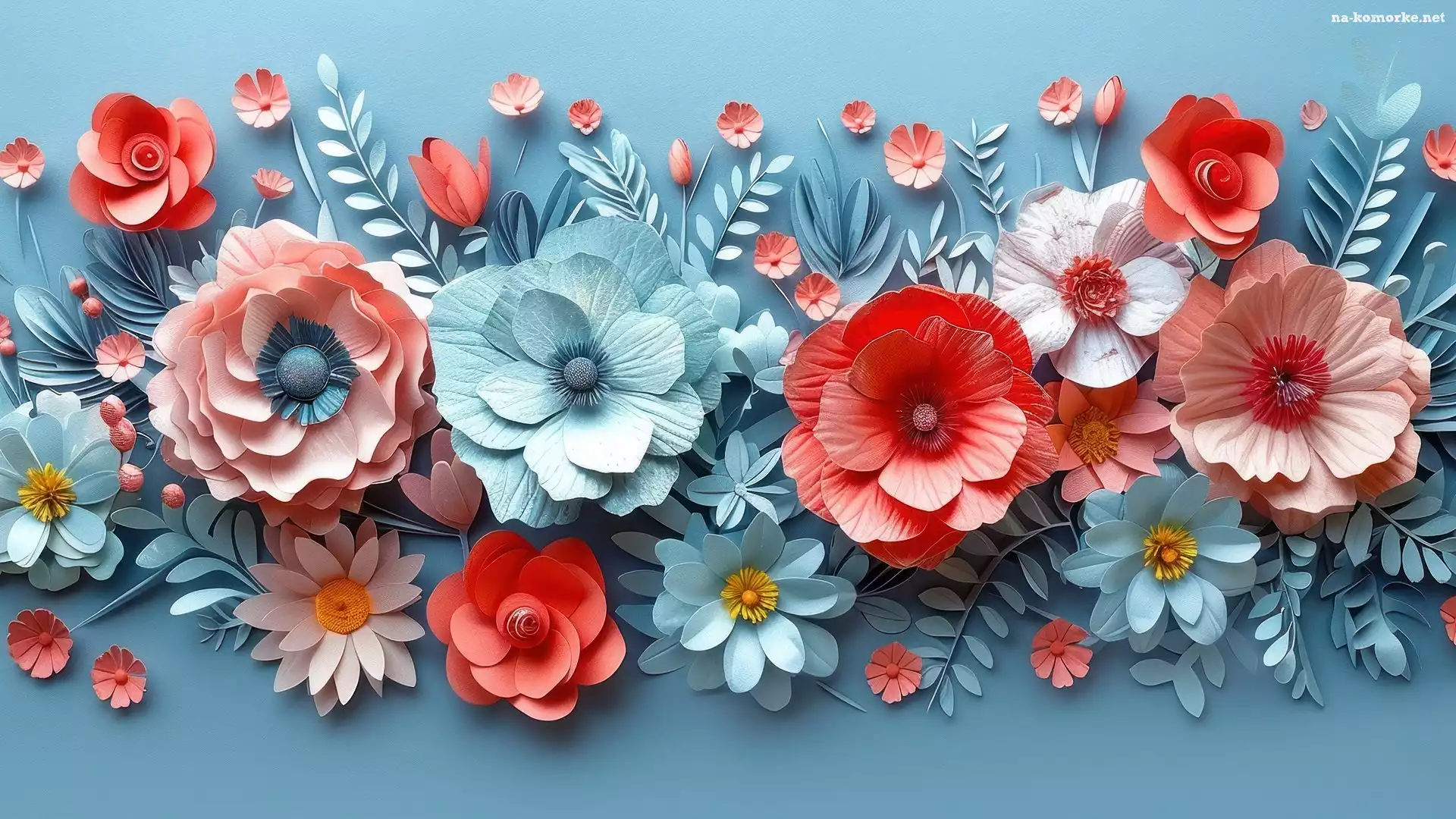 Czerwone, Kwiaty, Grafika, Niebieskie na Komórkę