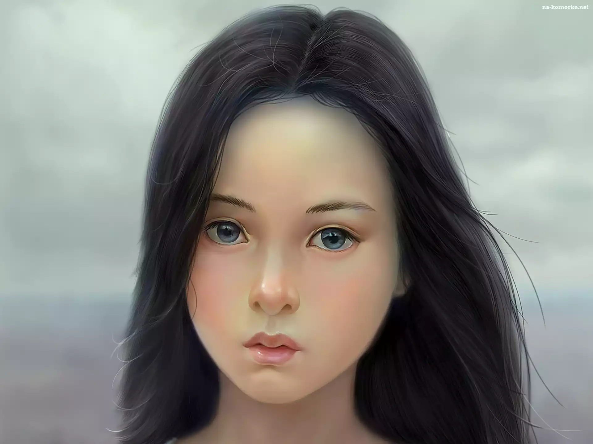 Dziewczyna, Niebieskie, Oczy na Komórkę