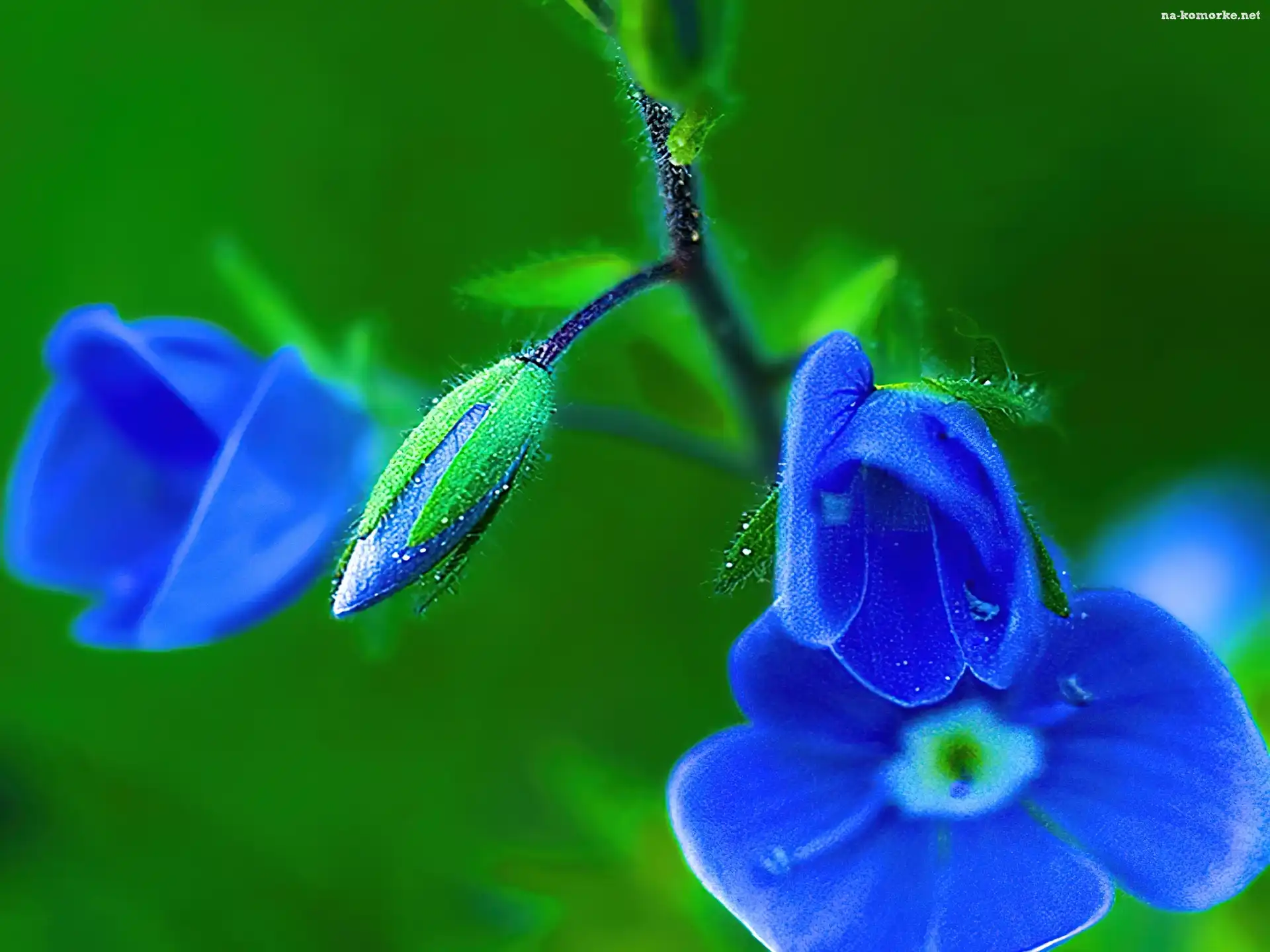 Niebieskie, Listki, Kwiatki, Gałązka na Komórkę