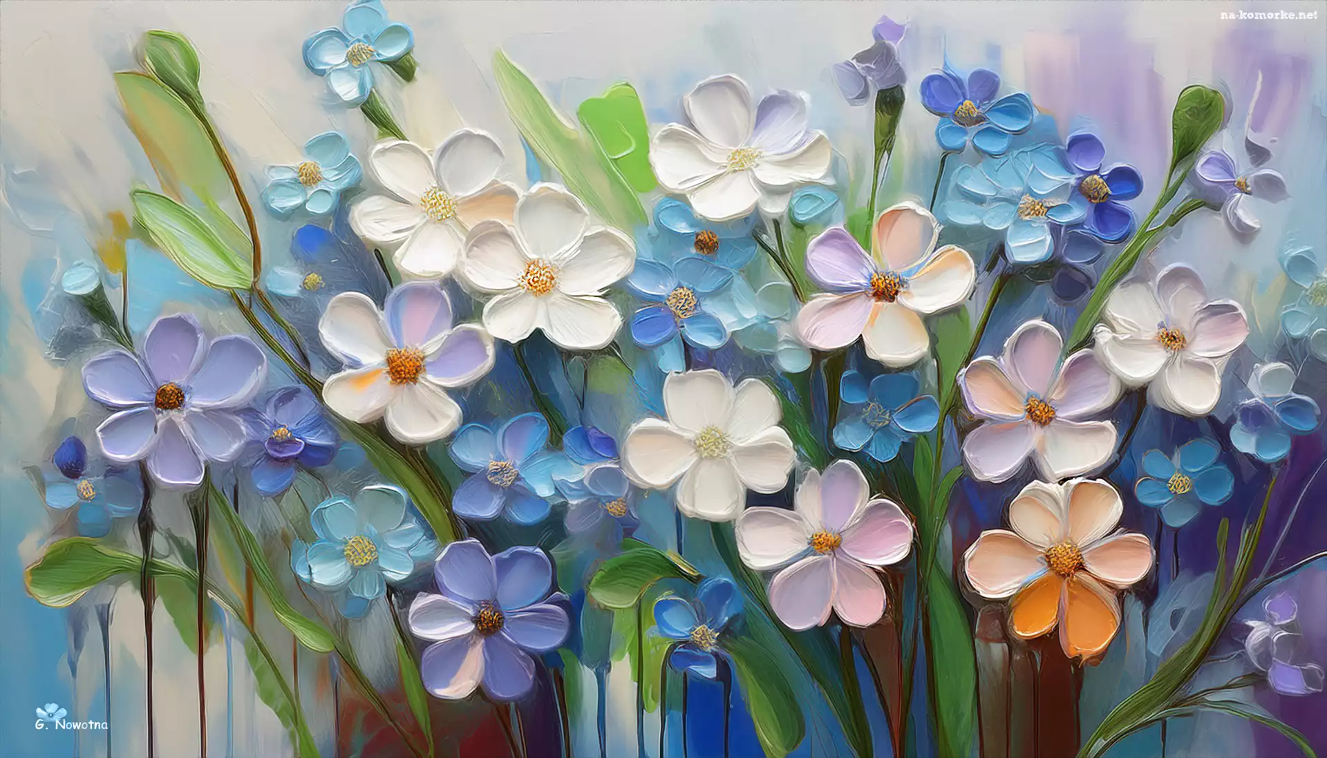 Kolorowe, Niebieskie, Kwiaty, Białe, Grafika na Komórkę