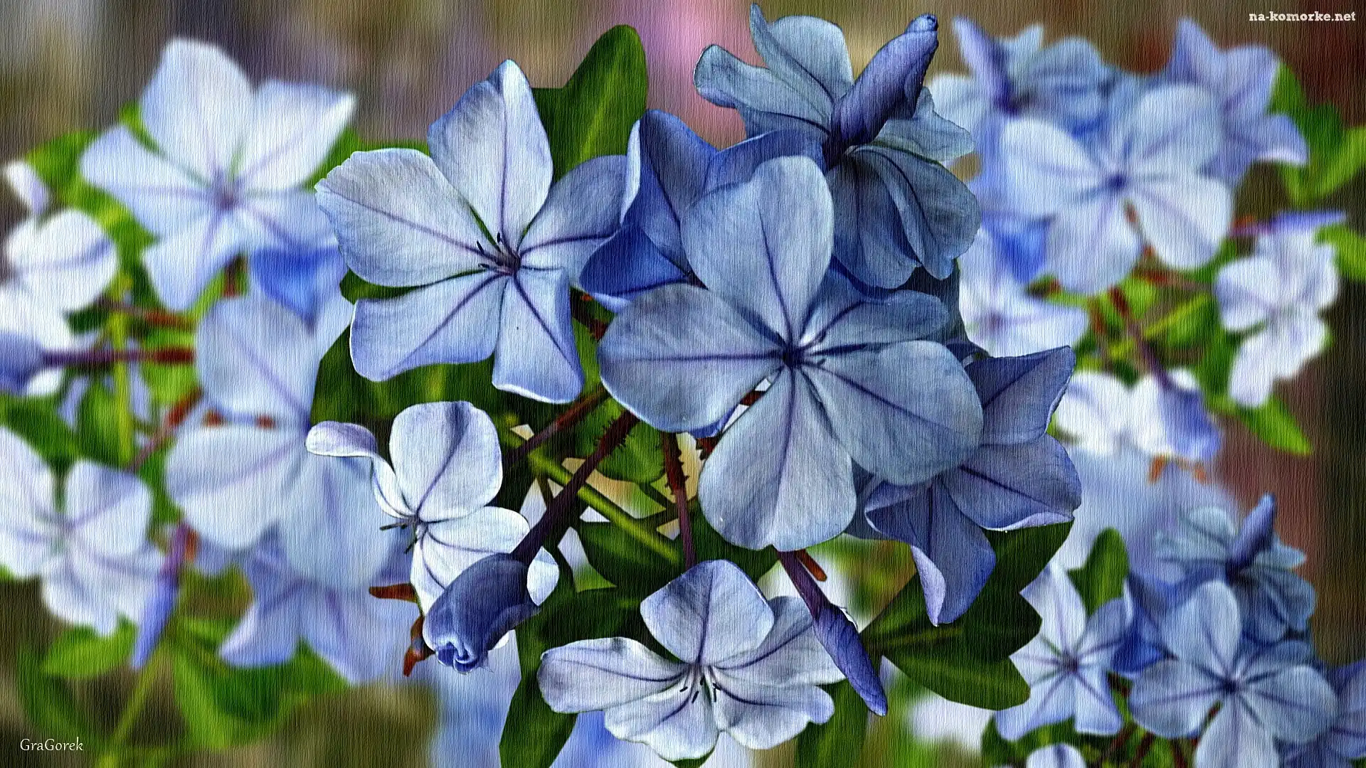 Niebieskie, Grafika, Kwiaty, Zbliżenie na Komórkę