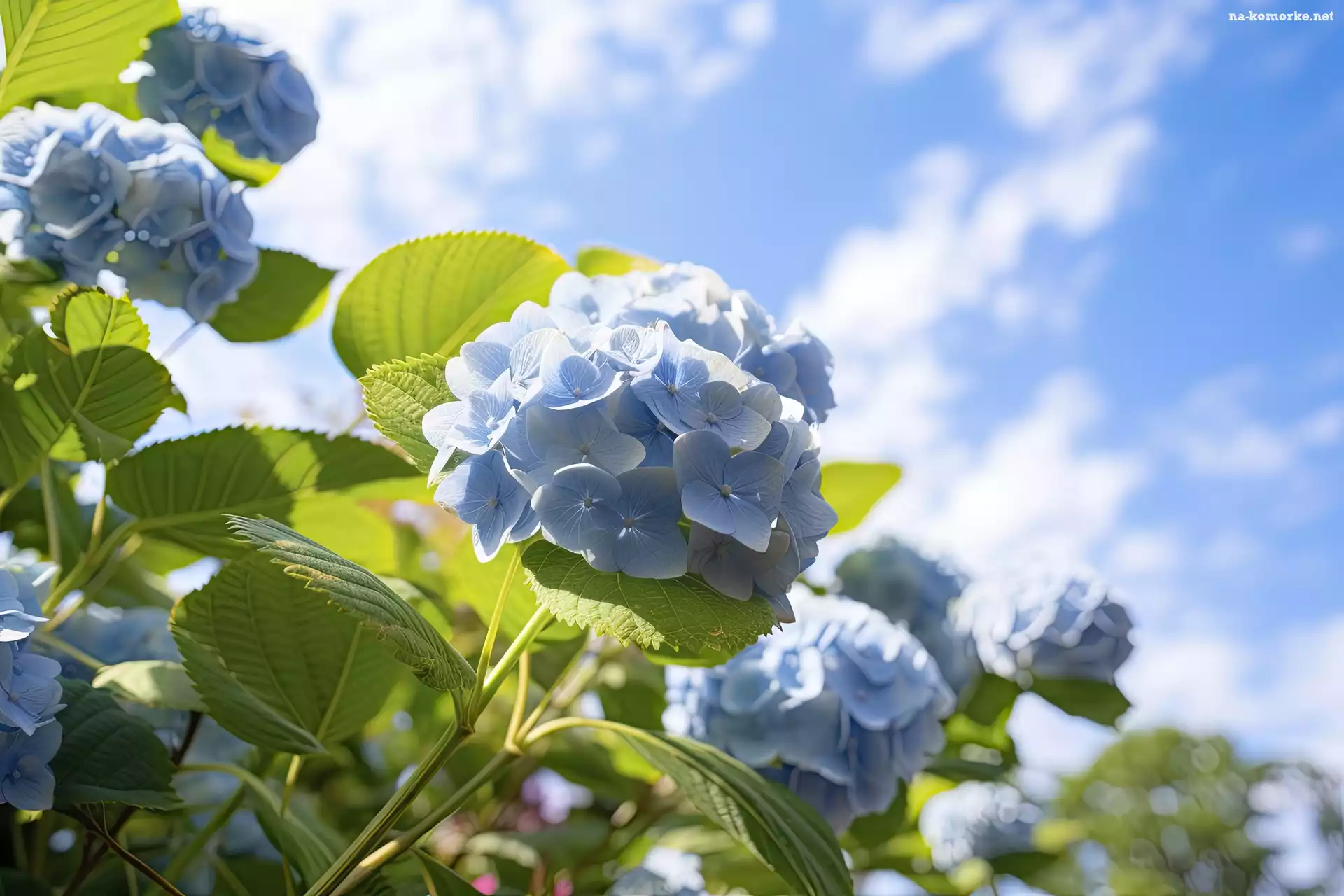 Kwiaty, Niebo, Hortensje, Niebieskie na Komórkę
