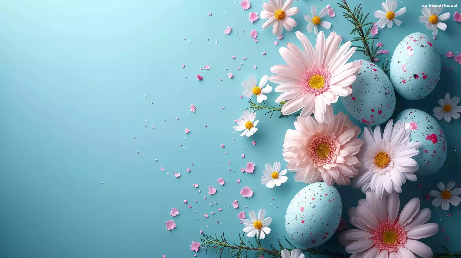 Pisanki, Wielkanoc, Kwiaty, Nakrapiane, Gerbery, Grafika, Różowe, Niebieskie na Komórkę